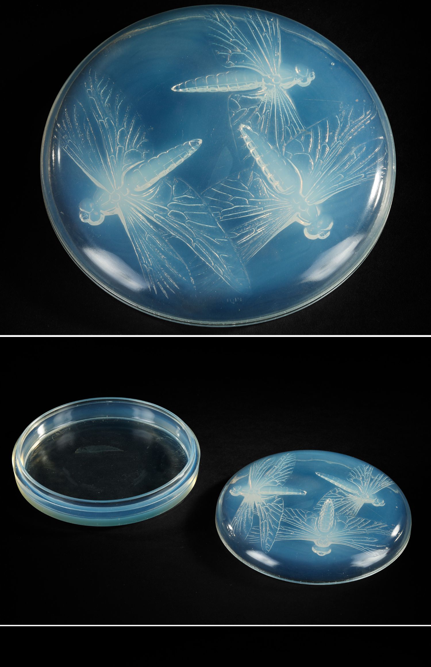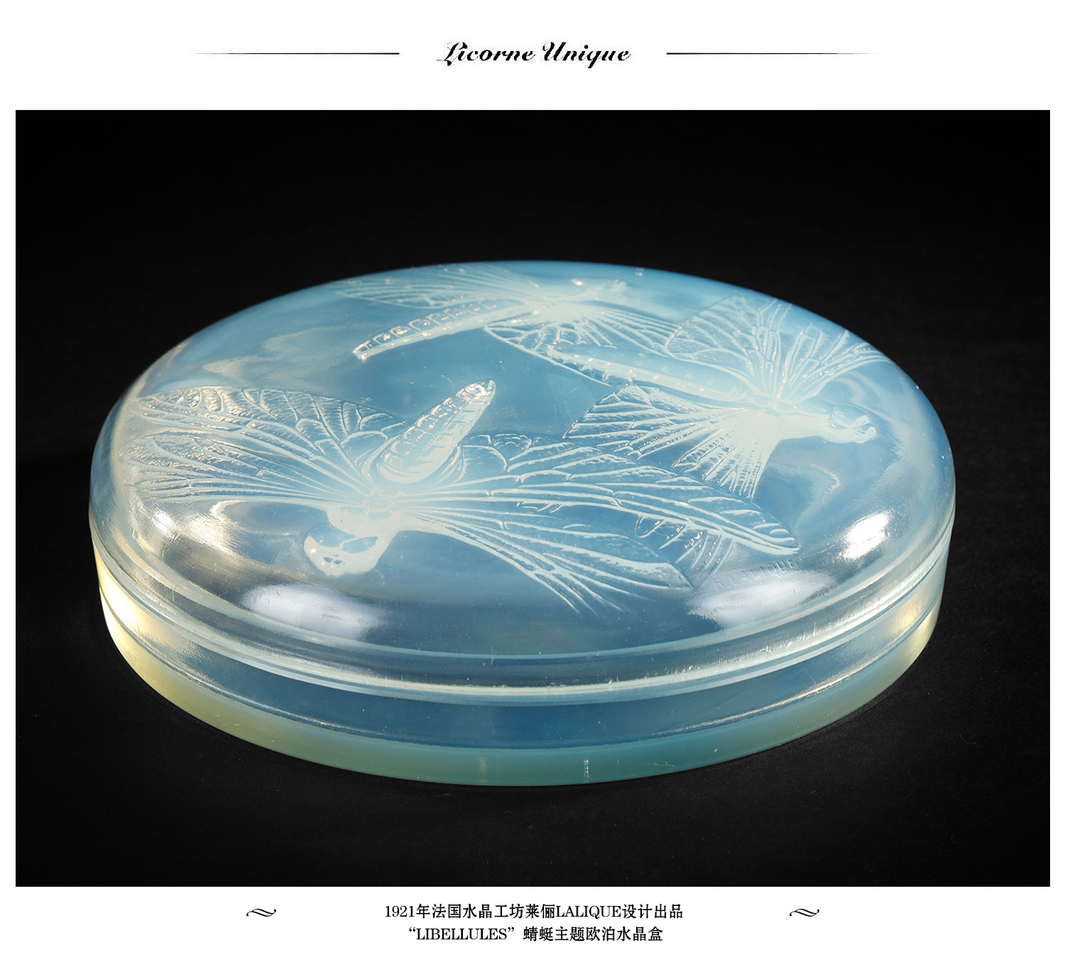 独角鹿西洋古董莱俪LALIQUE工坊LIBELLULES蜻蜓欧泊水晶珍宝盒