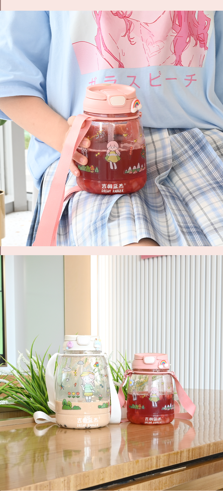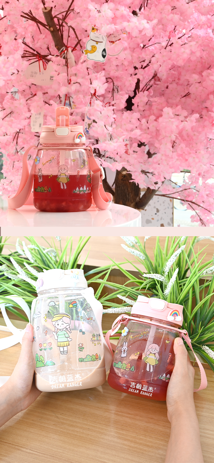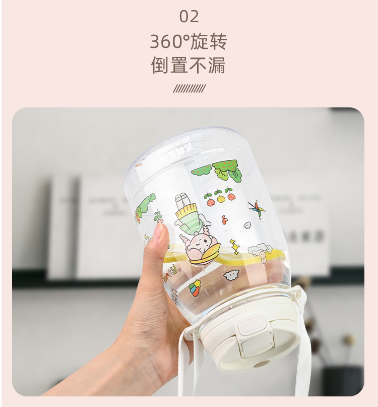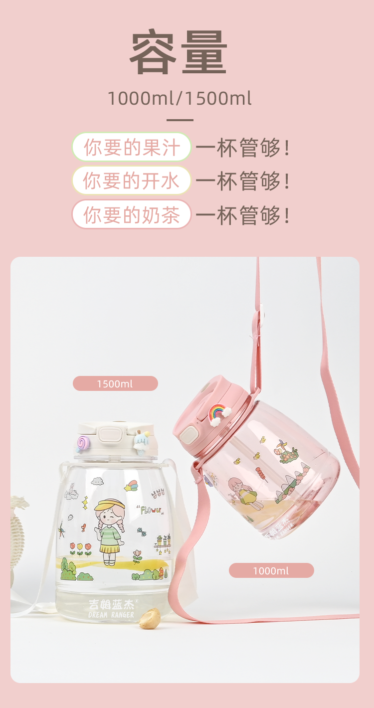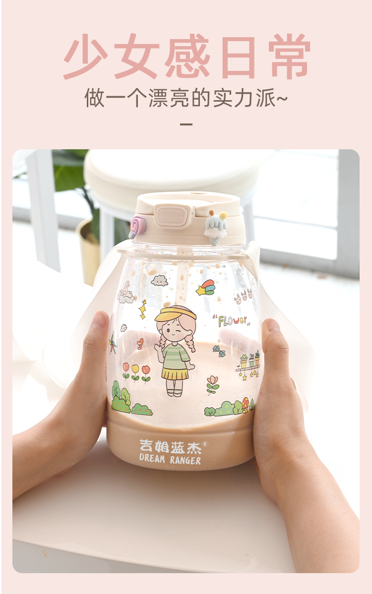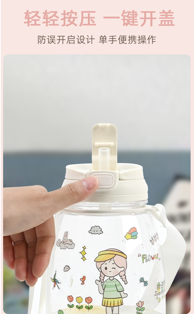 大肚吸管杯子超大容量 运动水壶便携可爱