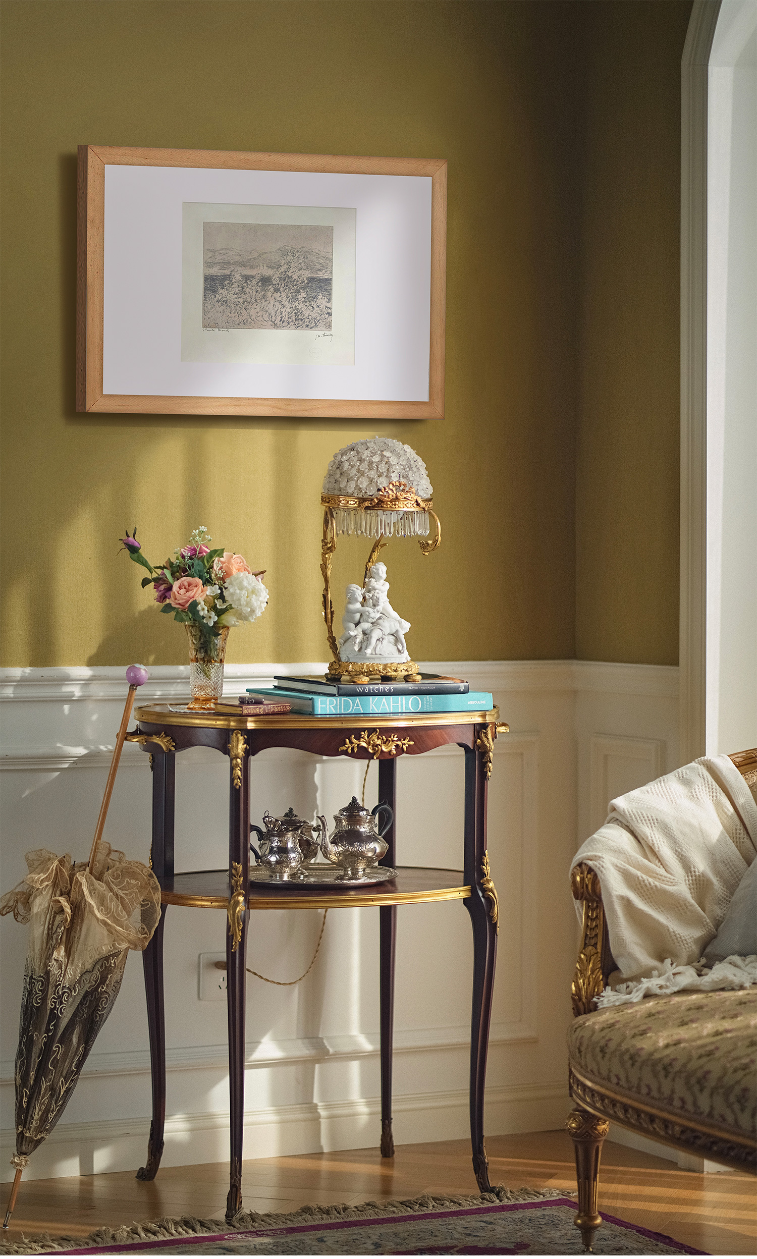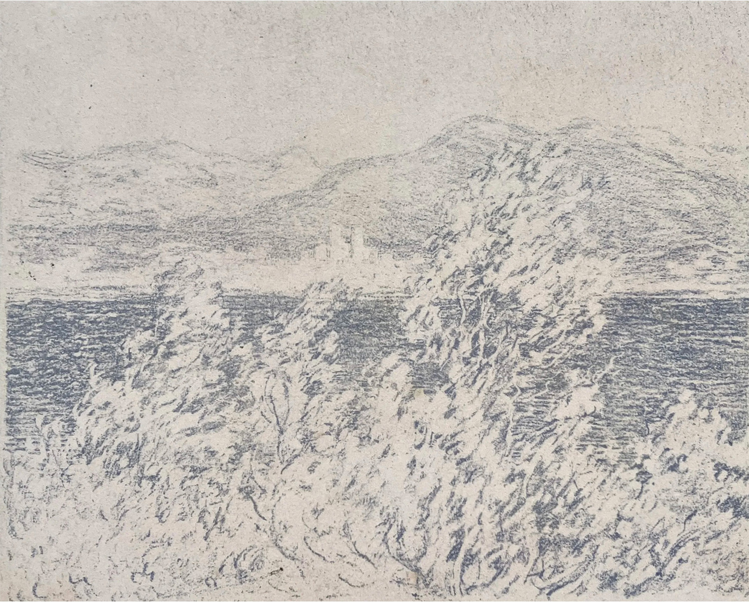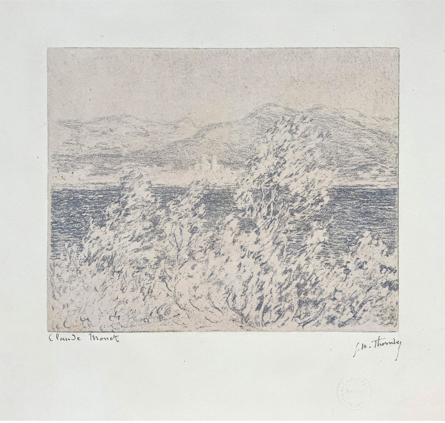 独角鹿西洋古董1892年代法国巴黎Belfond & Cie出版印象派大师莫奈授权版画家Georges William Thornley出品限量石版画作品《昂蒂布海角远眺》