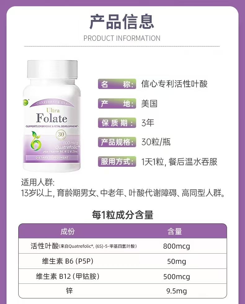 信心康乐活性叶酸800mcg