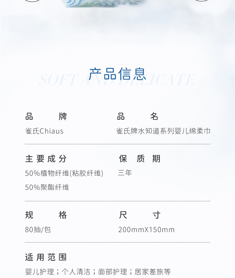 【超值特惠】雀氏水知道绵柔巾干湿两用婴儿可用双面纹理柔软