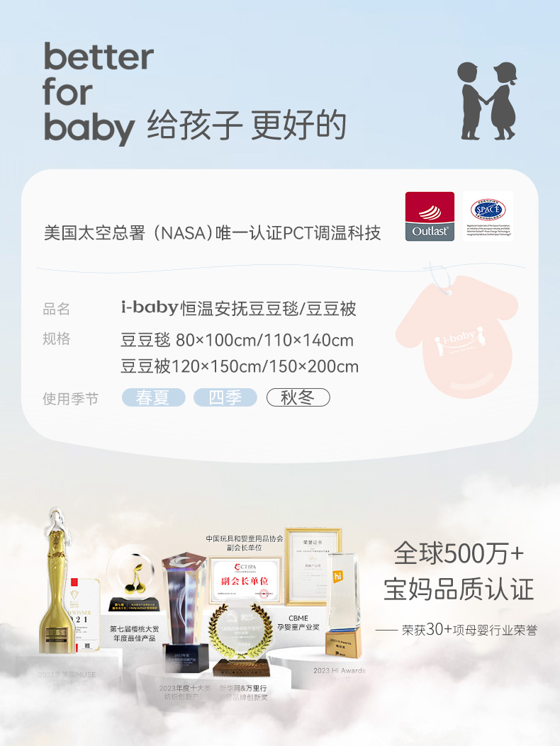 ibaby×outlast太空科技恒温自然生长豆豆被儿童春夏被子幼儿园盖毯四季通用