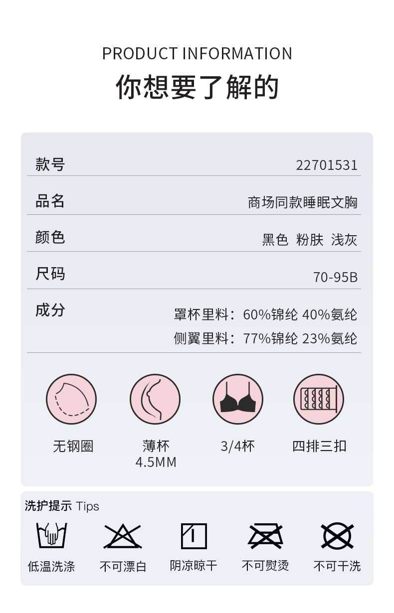 【黑色90B】熳洁儿 舒适时尚光杯无痕3/4罩手掌杯ABC通杯无痕养护文胸22701531