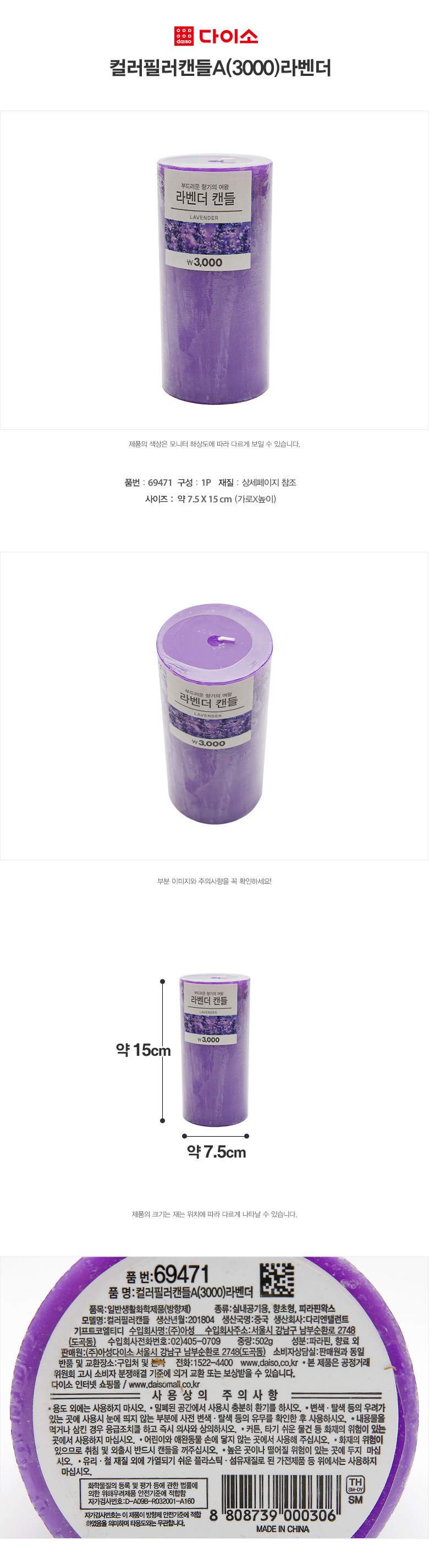 [Daiso]Color Pillar Candle Lavend 大创 柱状香薰蜡烛薰衣草JPY带授权招加盟代理