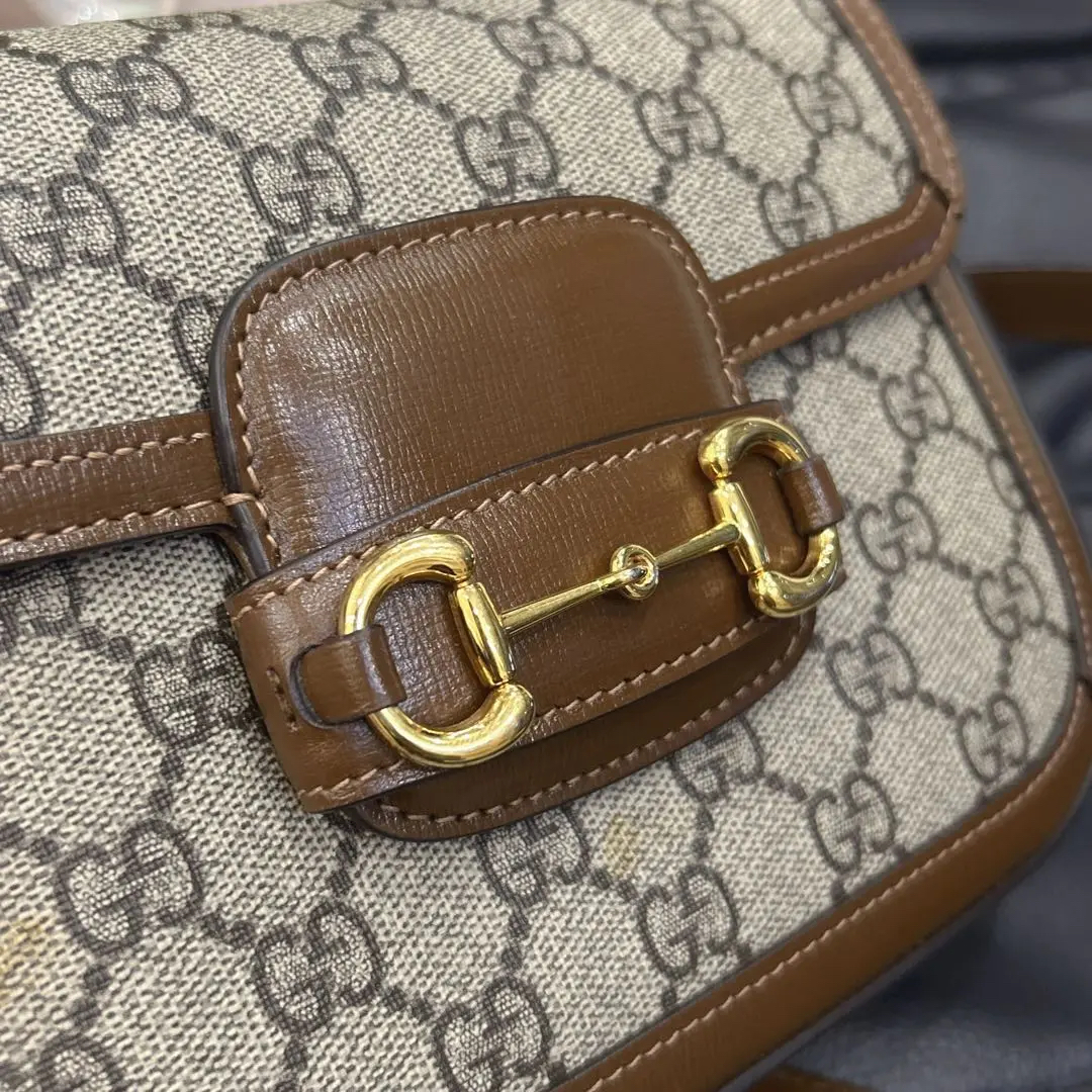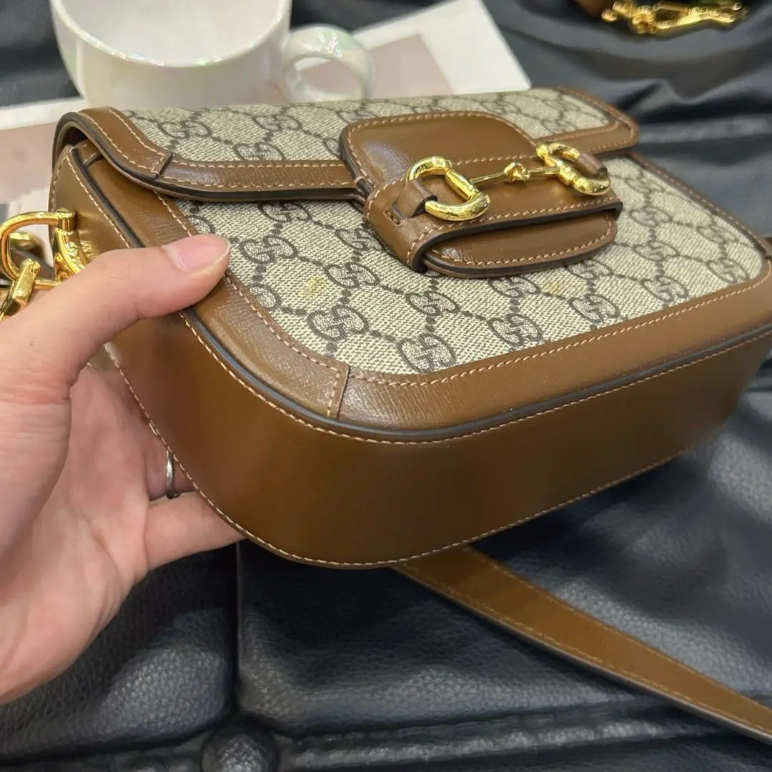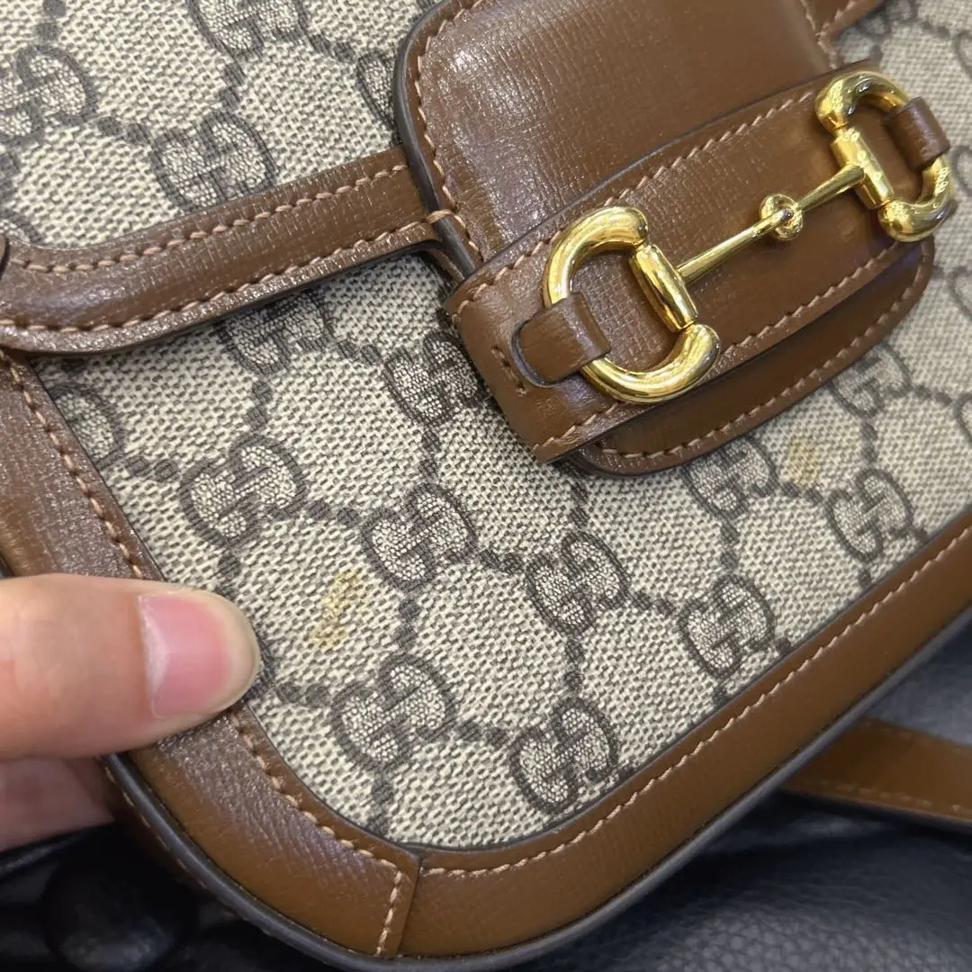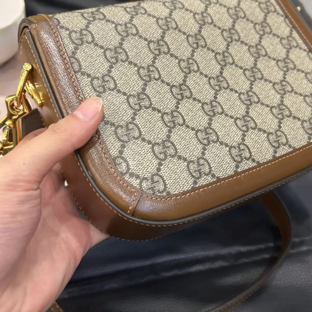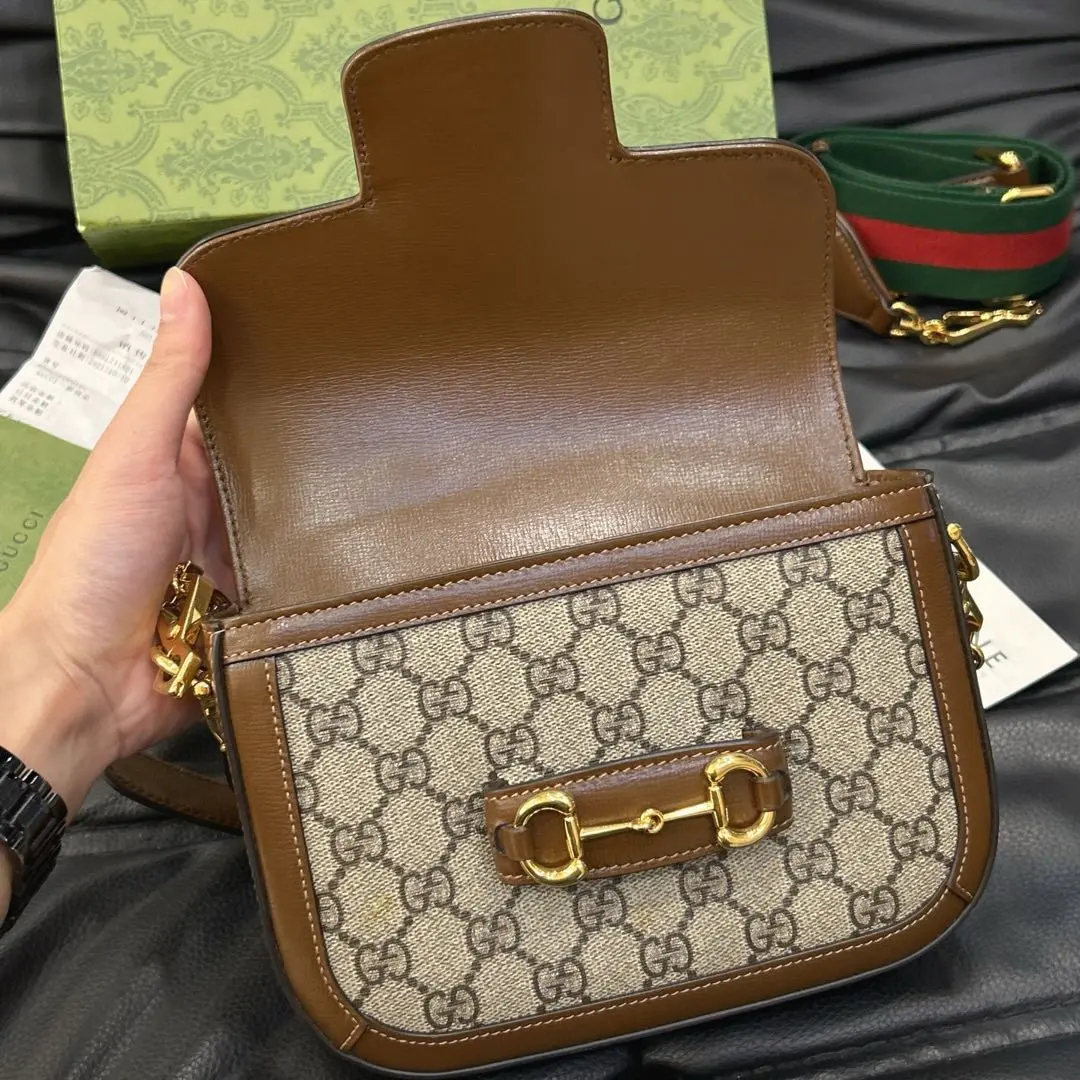正品二手 GUCCI 1955 乌木色 老花拼皮 mini 马鞍包🎊95新 20x15 大全套配件:两肩带 票 丝巾 防尘袋 盒子。包面两处脏污。肖战同款男女都可背