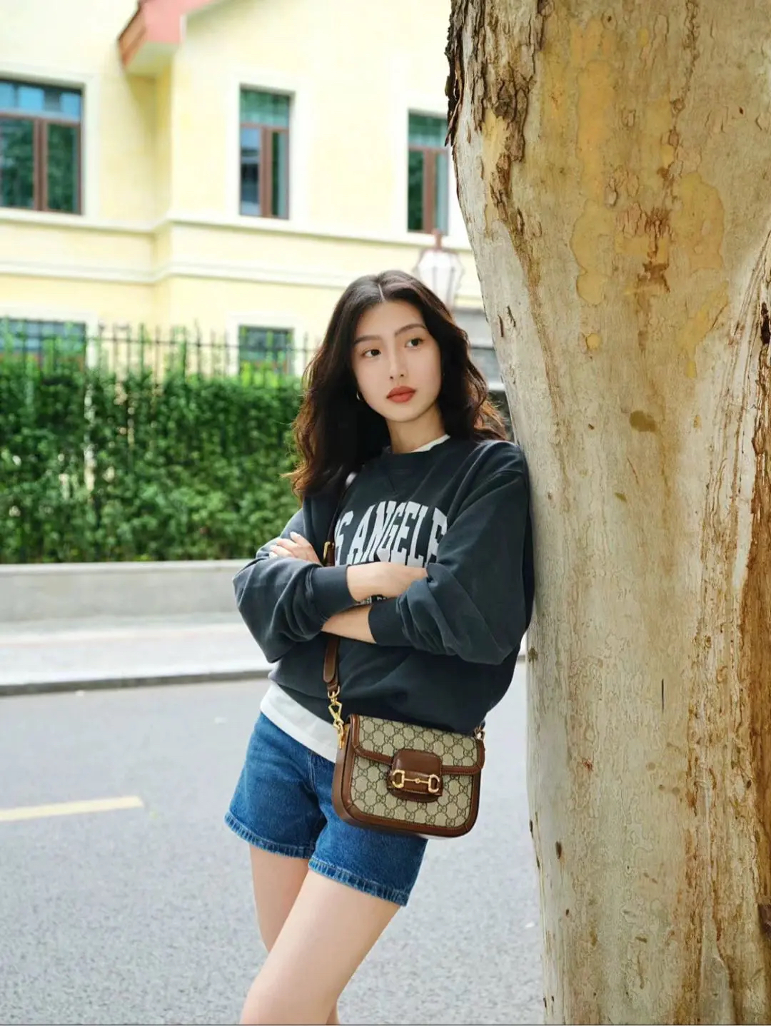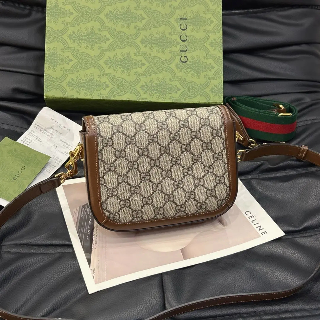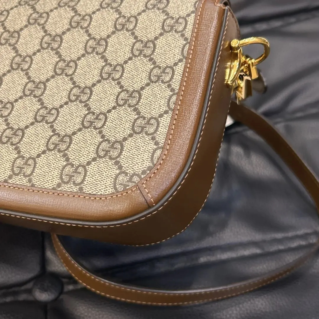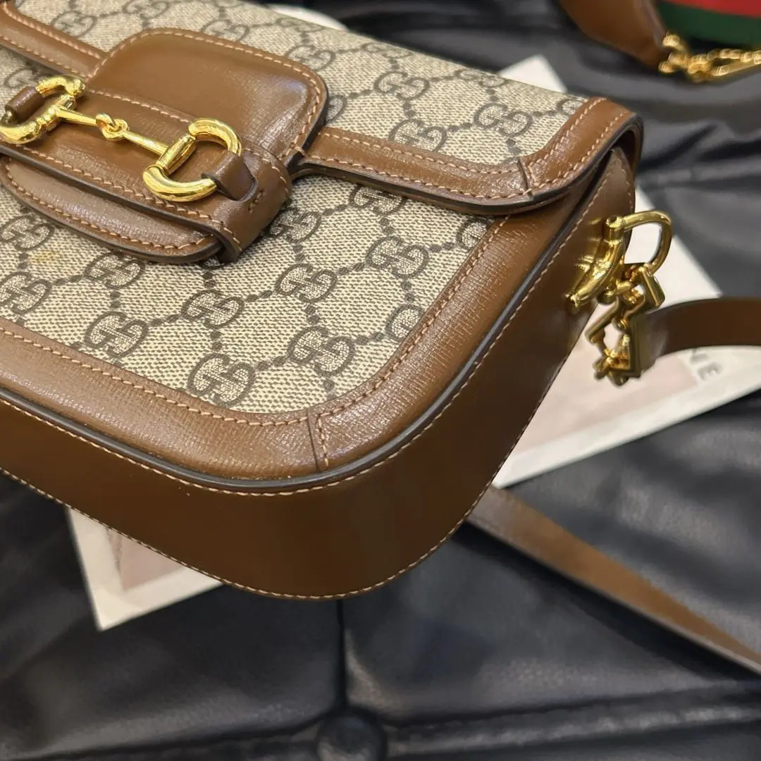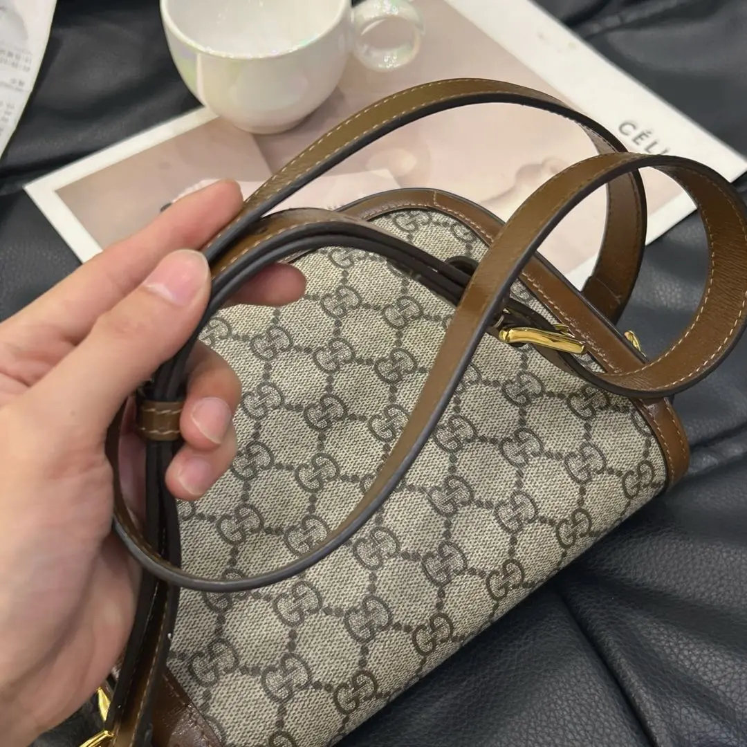 正品二手 GUCCI 1955 乌木色 老花拼皮 mini 马鞍包🎊95新 20x15 大全套配件:两肩带 票 丝巾 防尘袋 盒子。包面两处脏污。肖战同款男女都可背