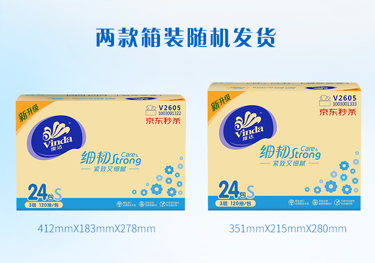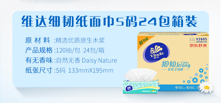 维达(Vinda) 抽纸纸巾 细韧3层120抽软抽*24包(S Pro码) 整箱销售