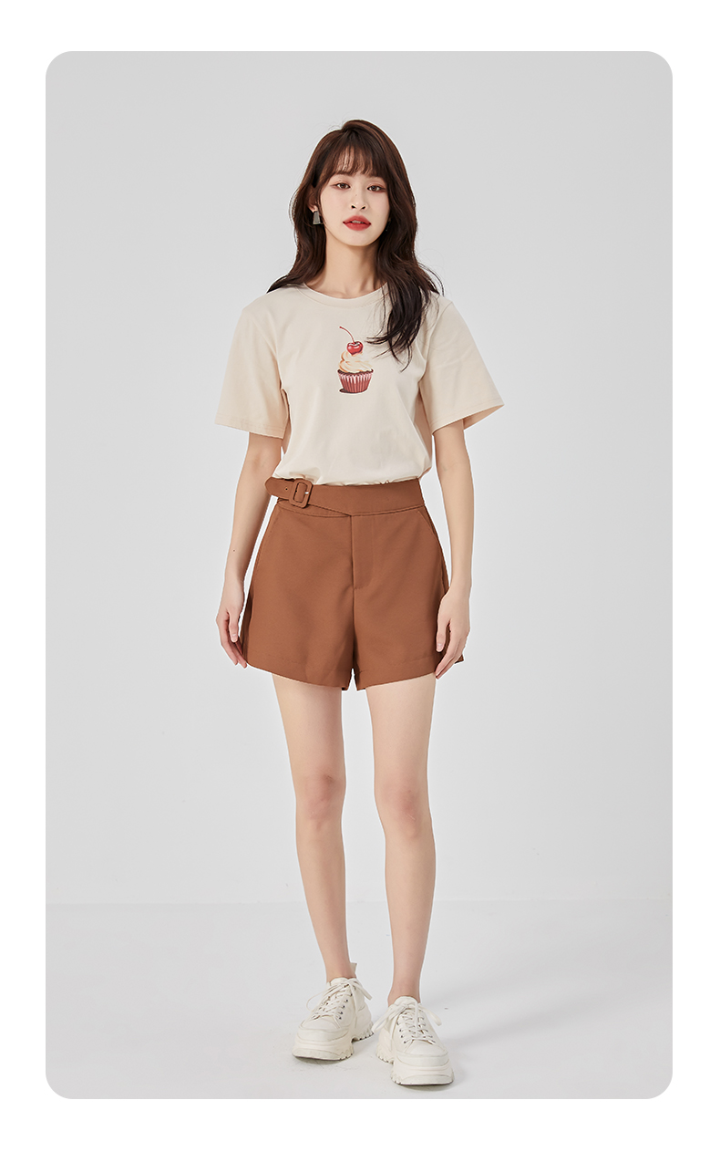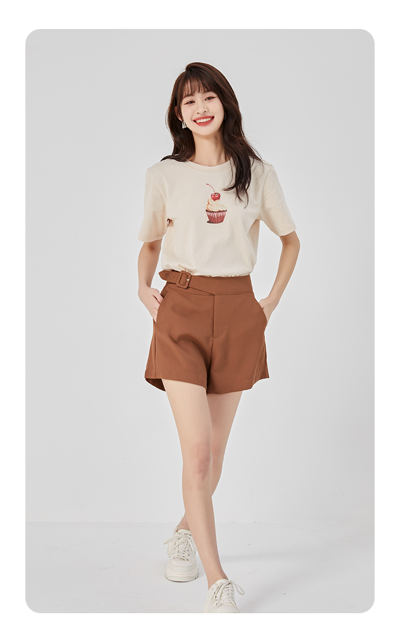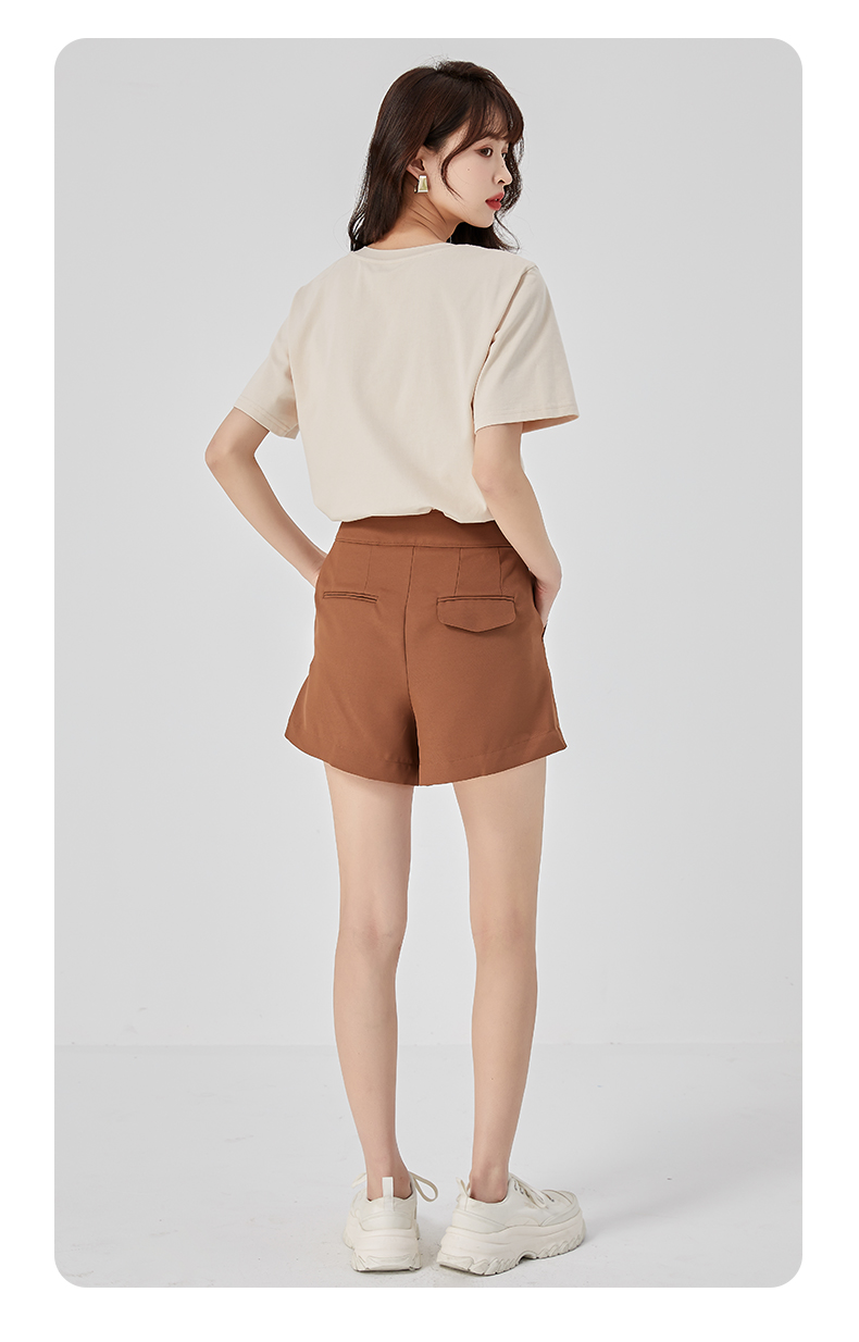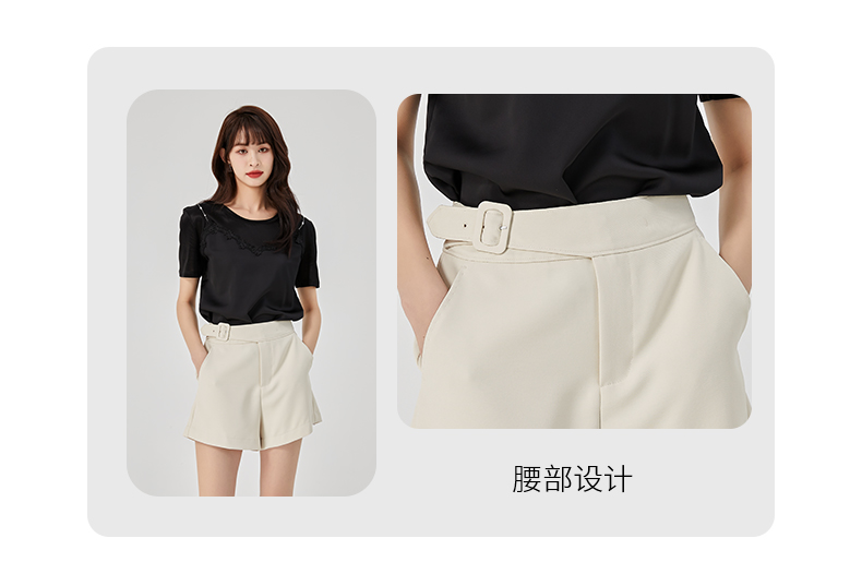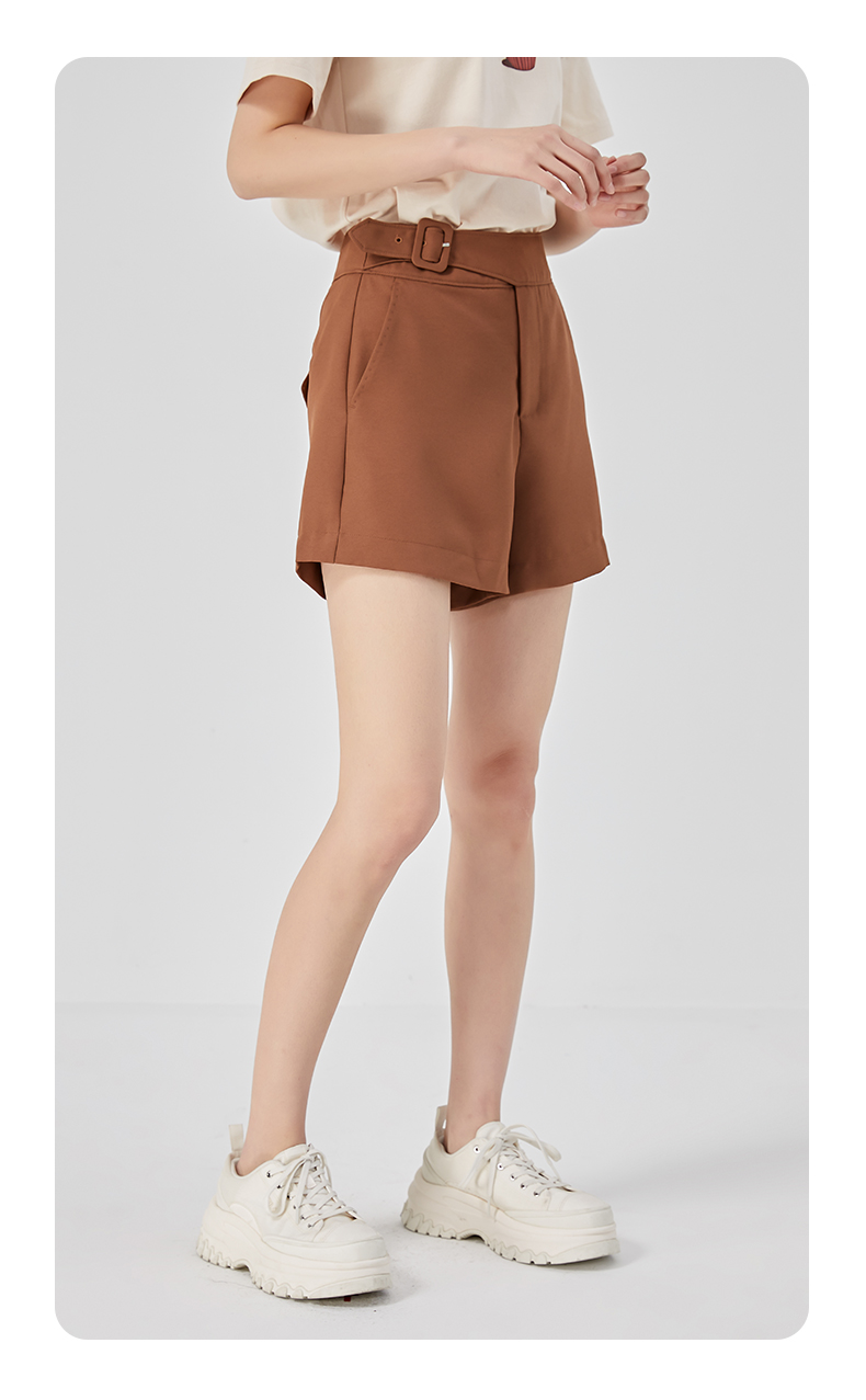 oldcolour夏新款休闲简约气质高腰直筒阔腿显瘦短裤O22071247