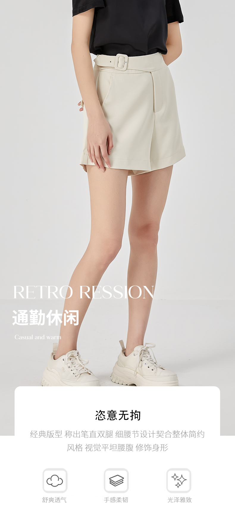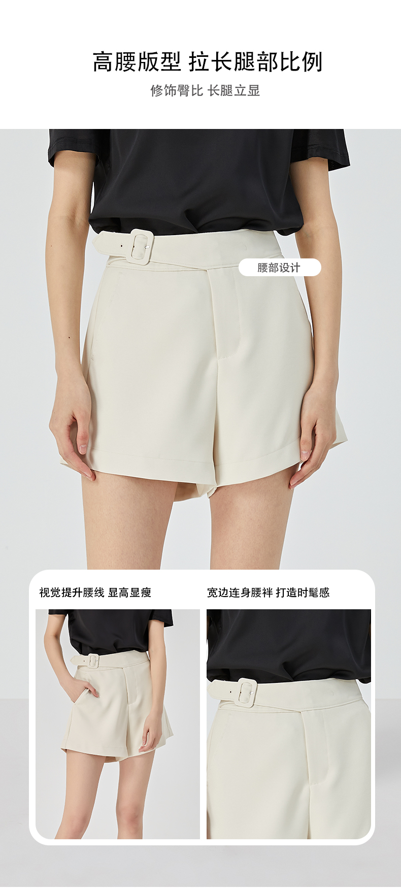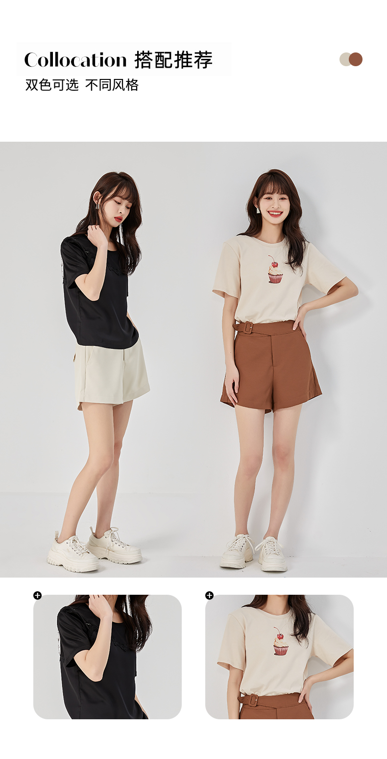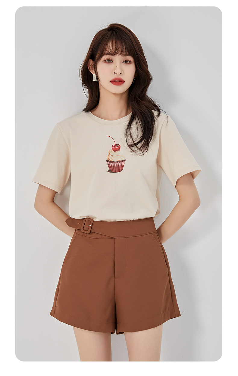 oldcolour夏新款休闲简约气质高腰直筒阔腿显瘦短裤O22071247