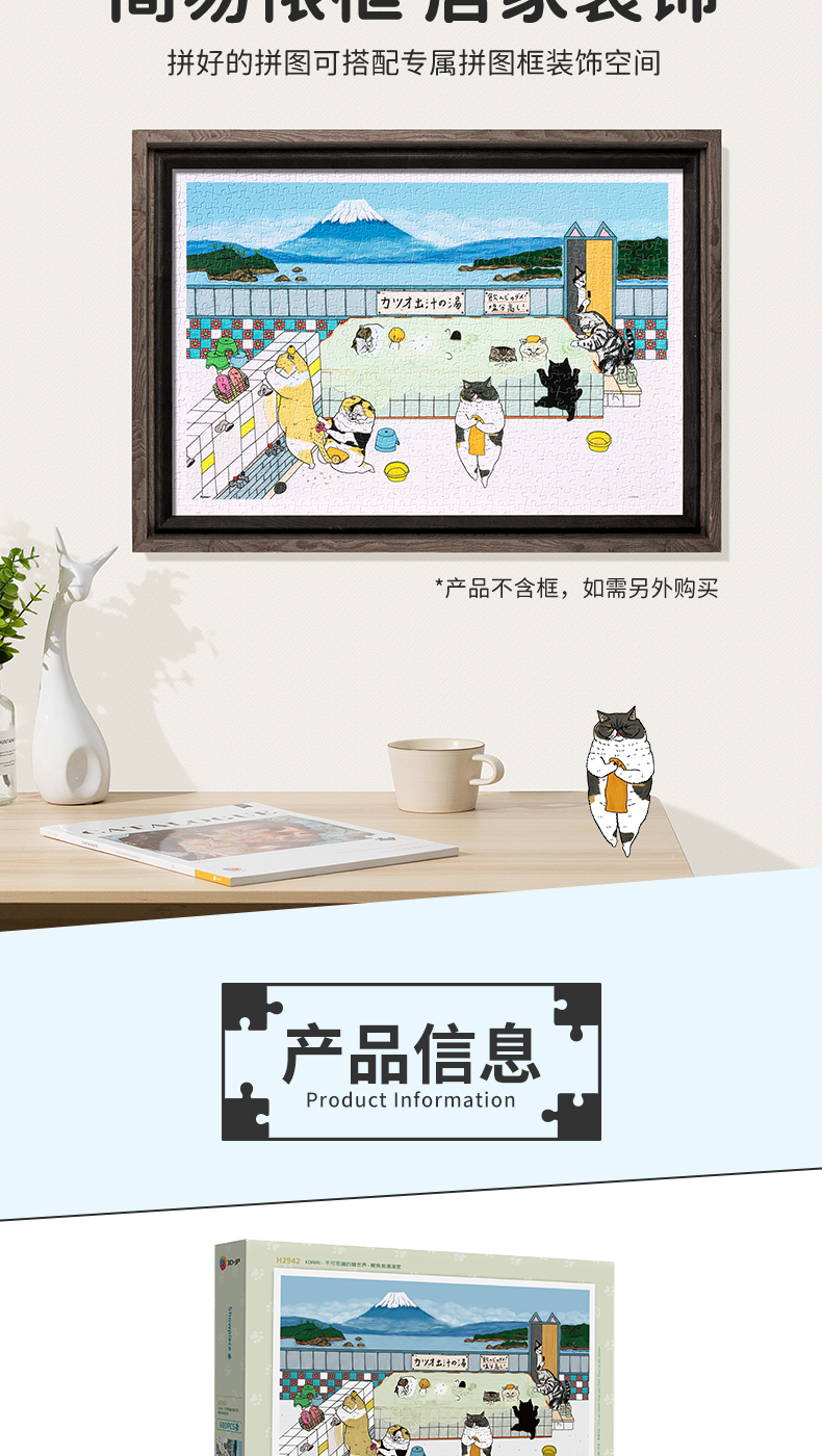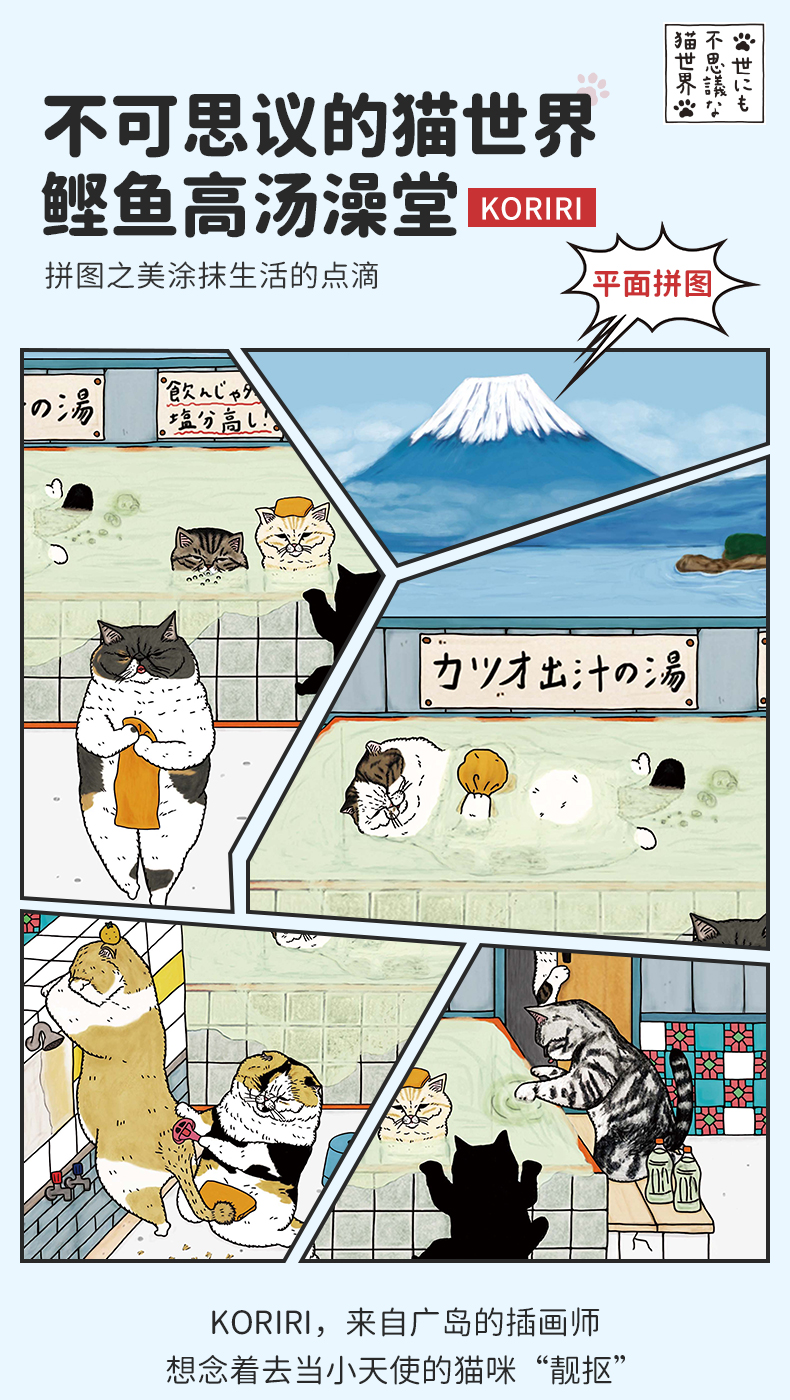 【折扣商品 不退不换】600片平面拼图塑料拼图 H2942 KORIRI-不可思议的猫世界-鲣鱼高汤澡堂