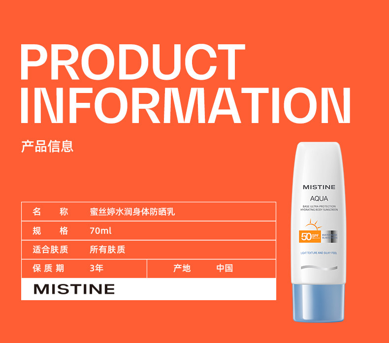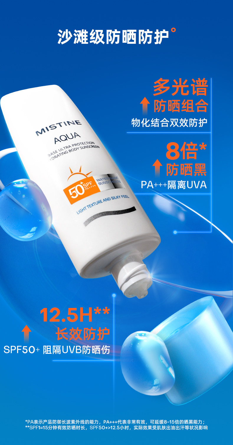 泰国 Mistine 蜜丝婷小蓝帽身体面部防晒霜清爽SPF50 70ml