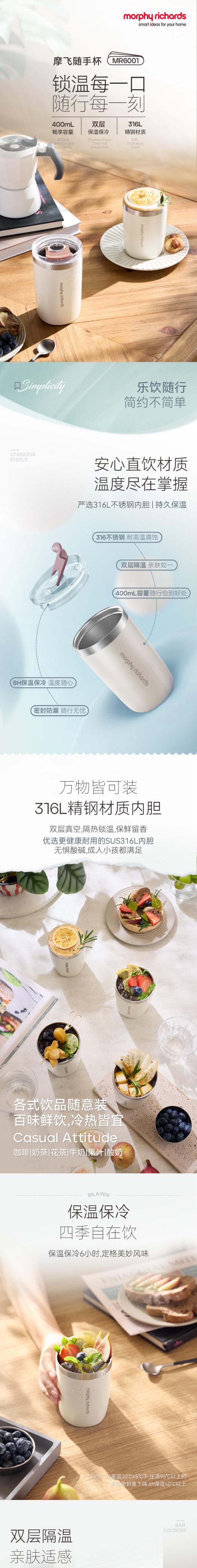 【摩飞随手杯0.4L】食品级耐高温材质 耐磨抗刮