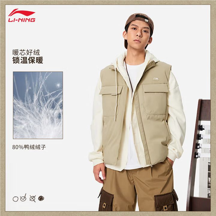 李宁男子冬季防风羽绒服马甲AMRU033-4
