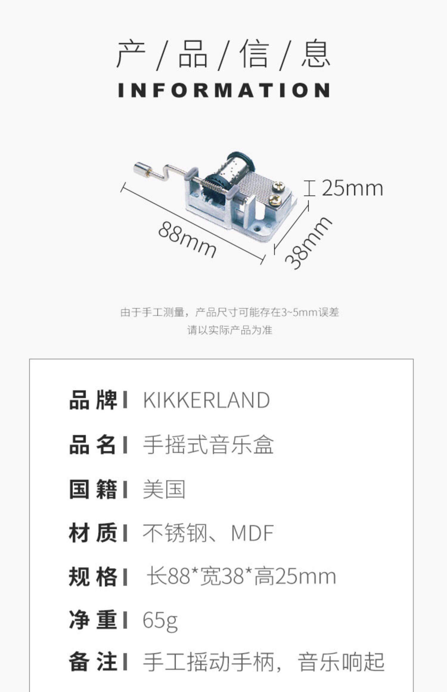 美国进口-Kikkerland手动发条音乐盒八音盒创意生日礼物—无备注随机发货-会员6折