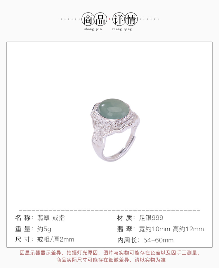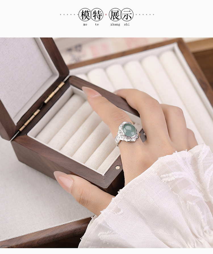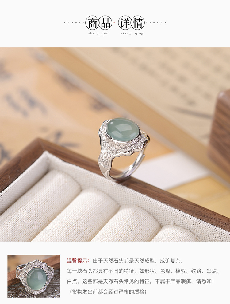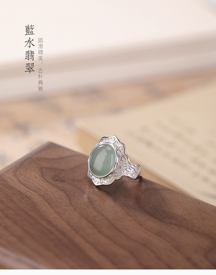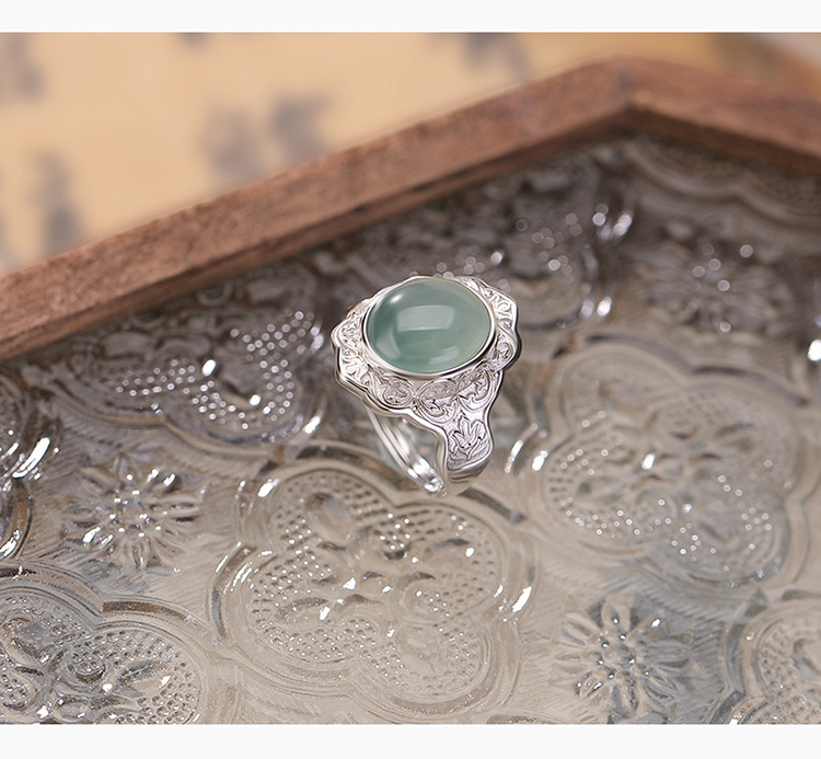 【富贵莲华】S999足银蓝水翡翠莲花纹蛋面戒指【CW-JZ06866】