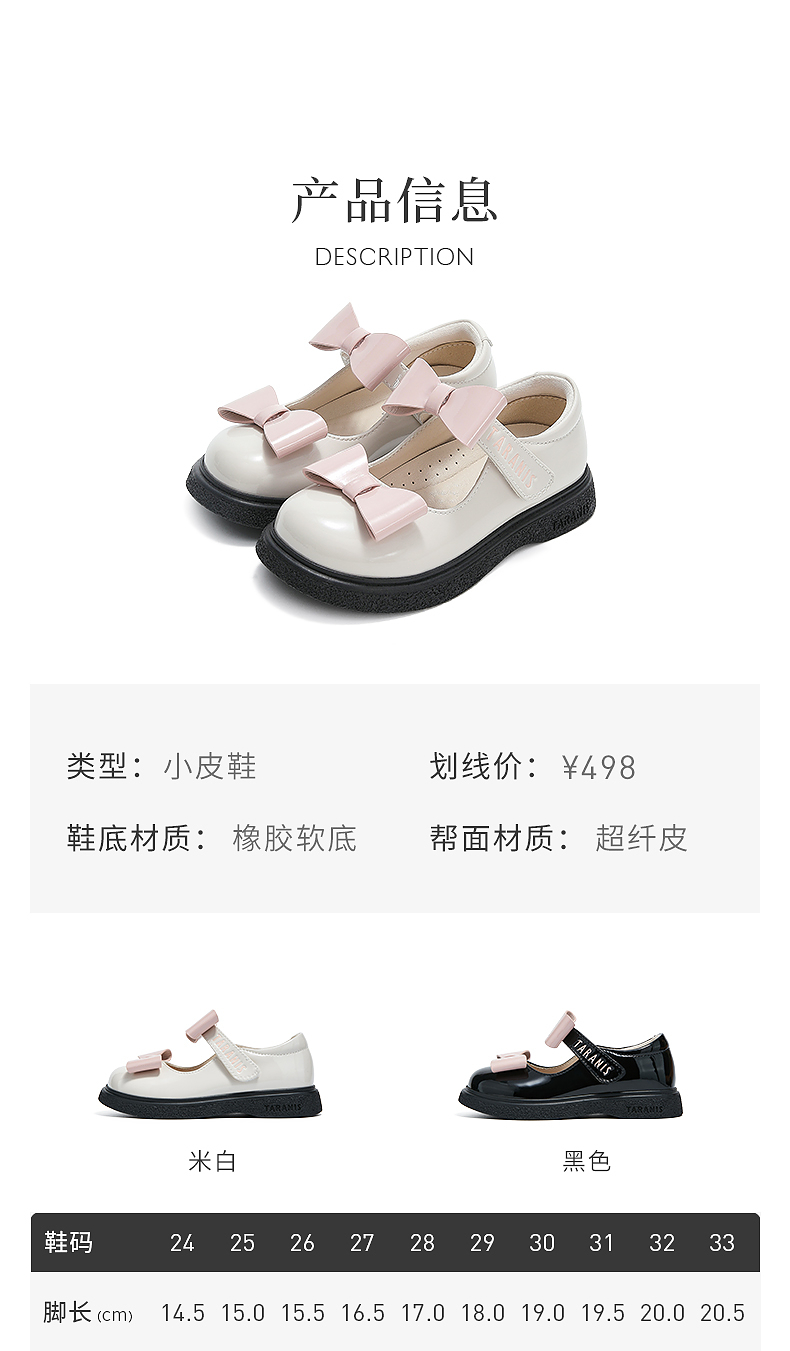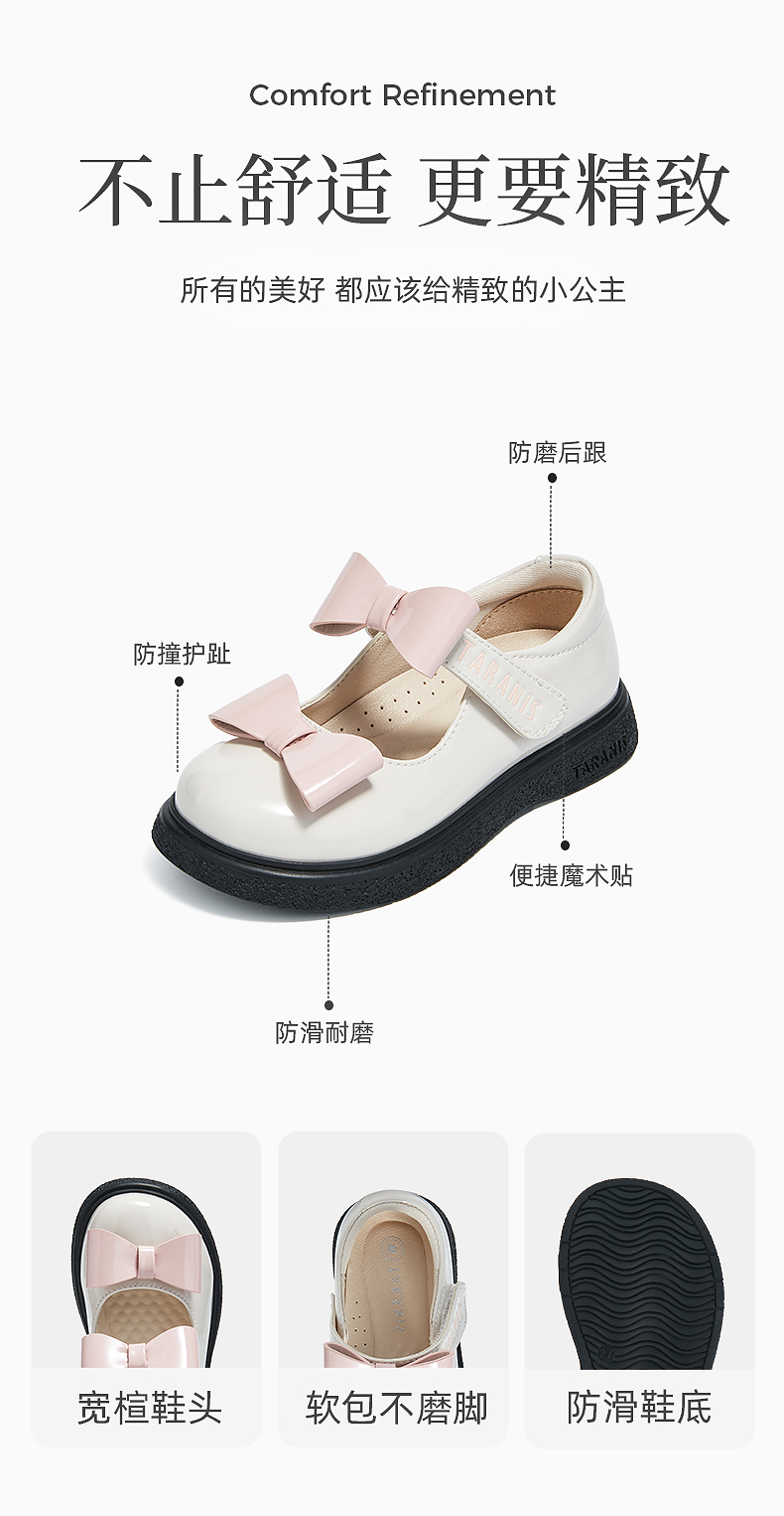 泰兰尼斯meta皮鞋25春新款女宝公主皮鞋单鞋甜美轻便柔软透气鞋子 M03X5A6008