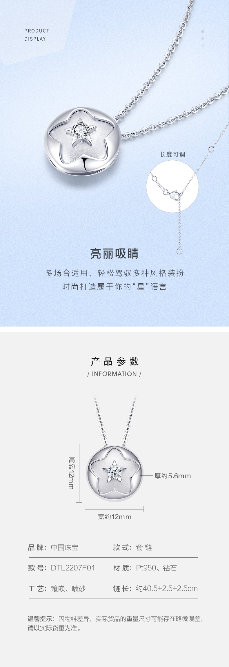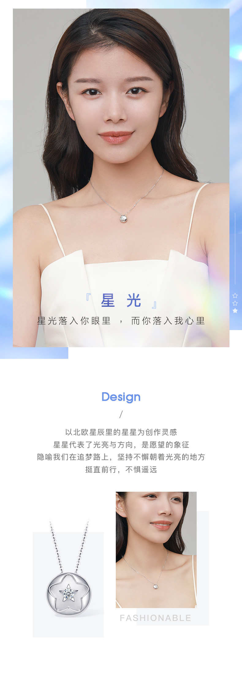 PT950铂金钻石星光套链 星星项链