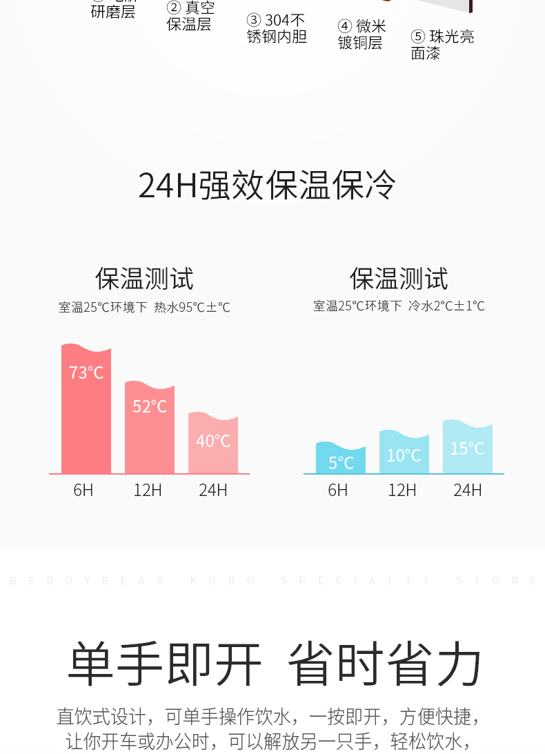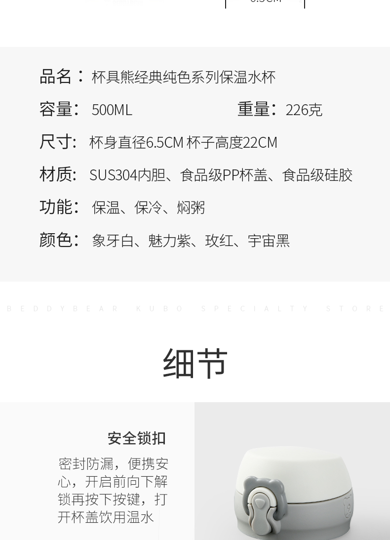 韩国杯具熊BEDDYBEAR纯色成人保温杯480mlBJX4