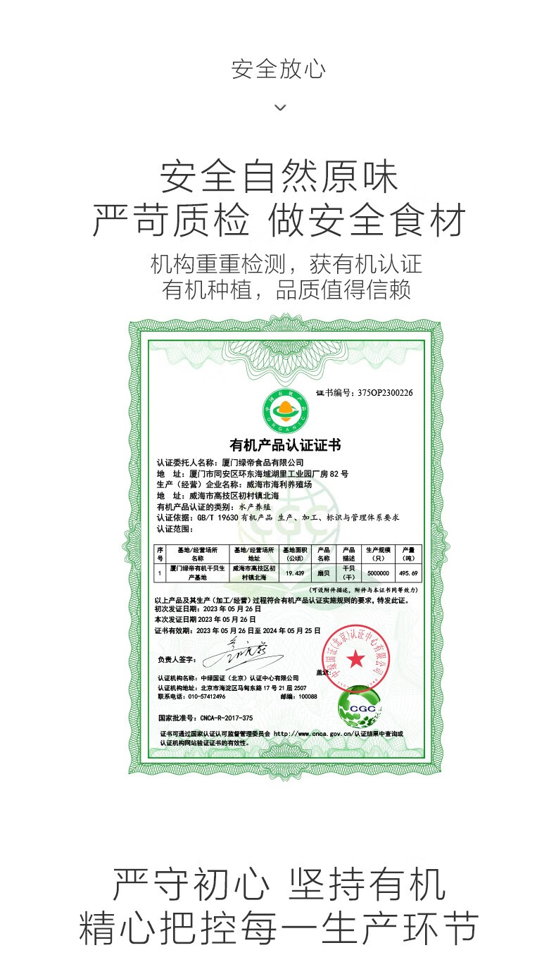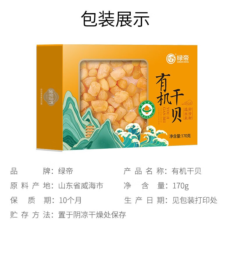 绿帝有机干贝170g