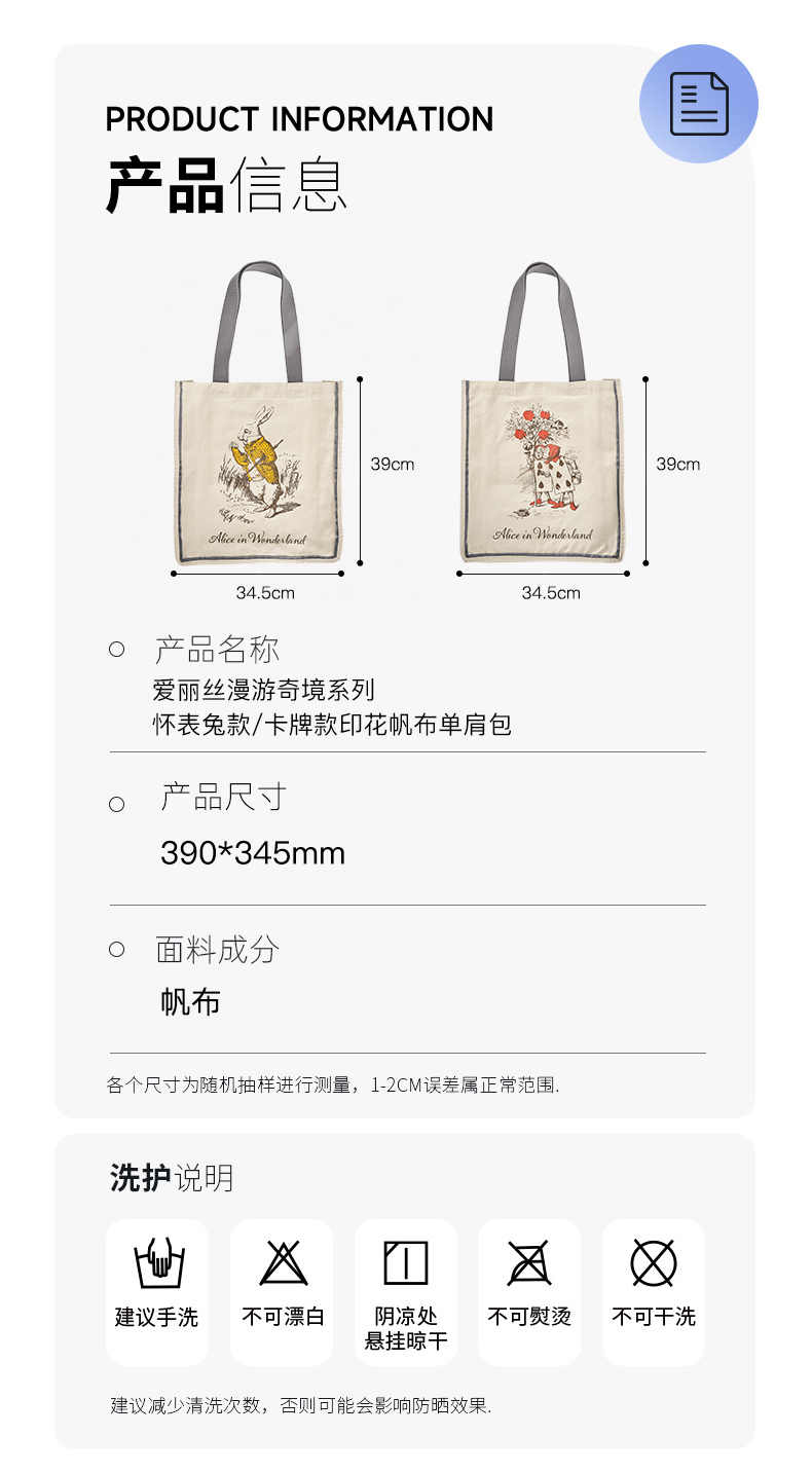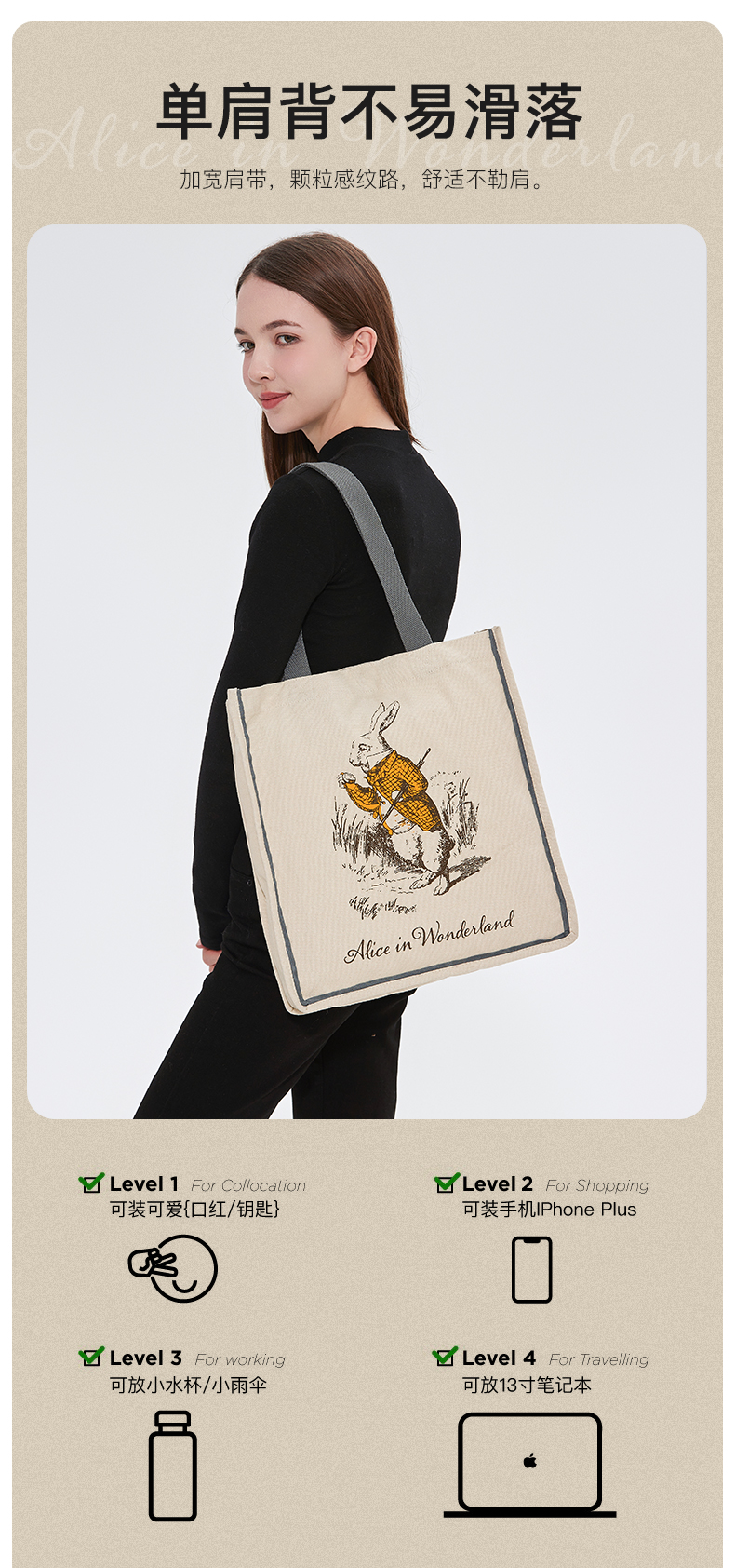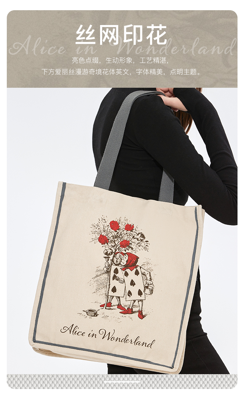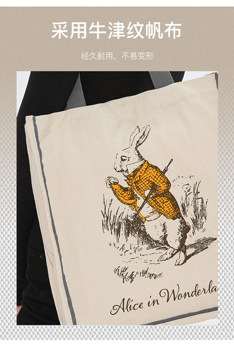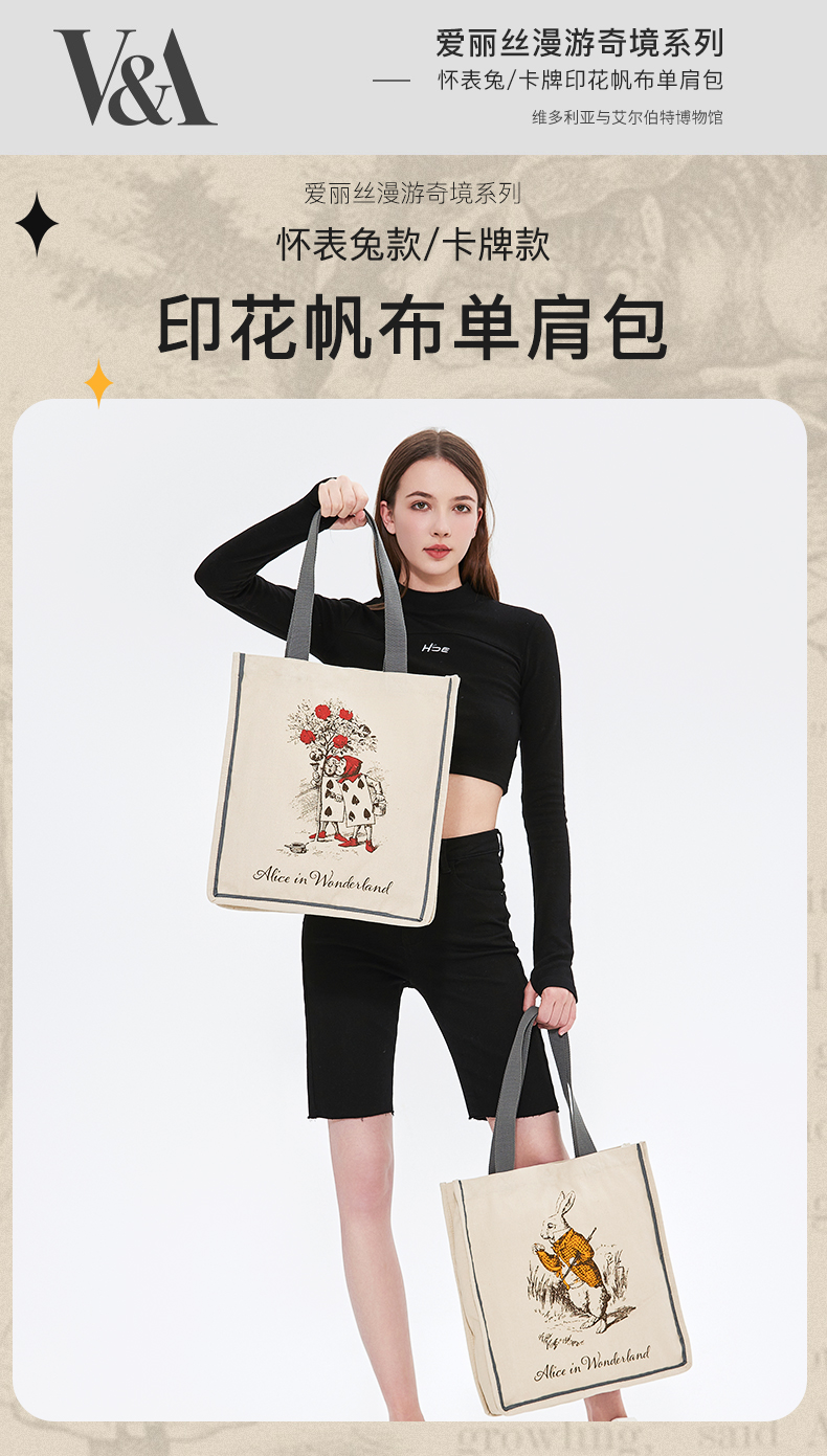 V&A博物馆 爱丽丝漫游奇境系列 卡牌怀表兔印花帆布单肩包