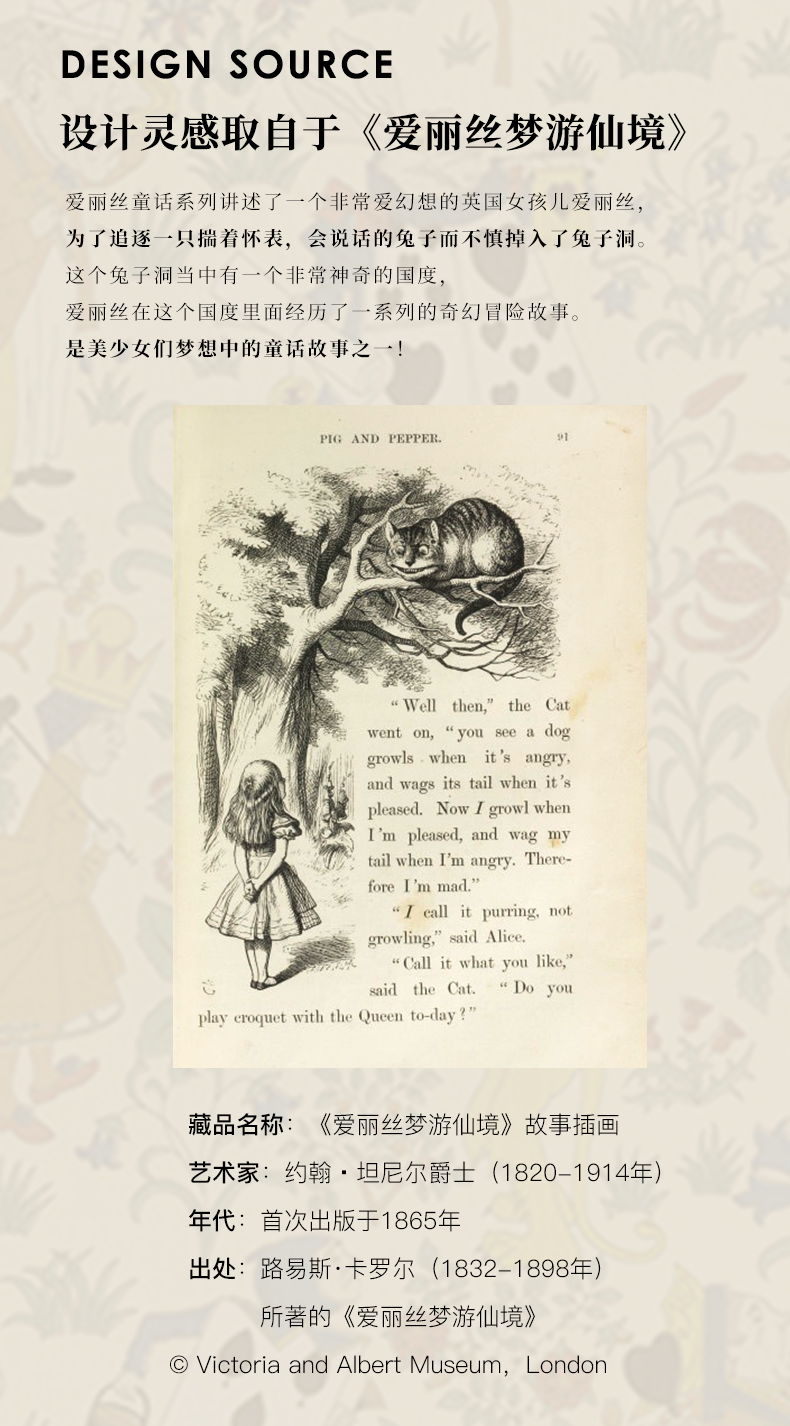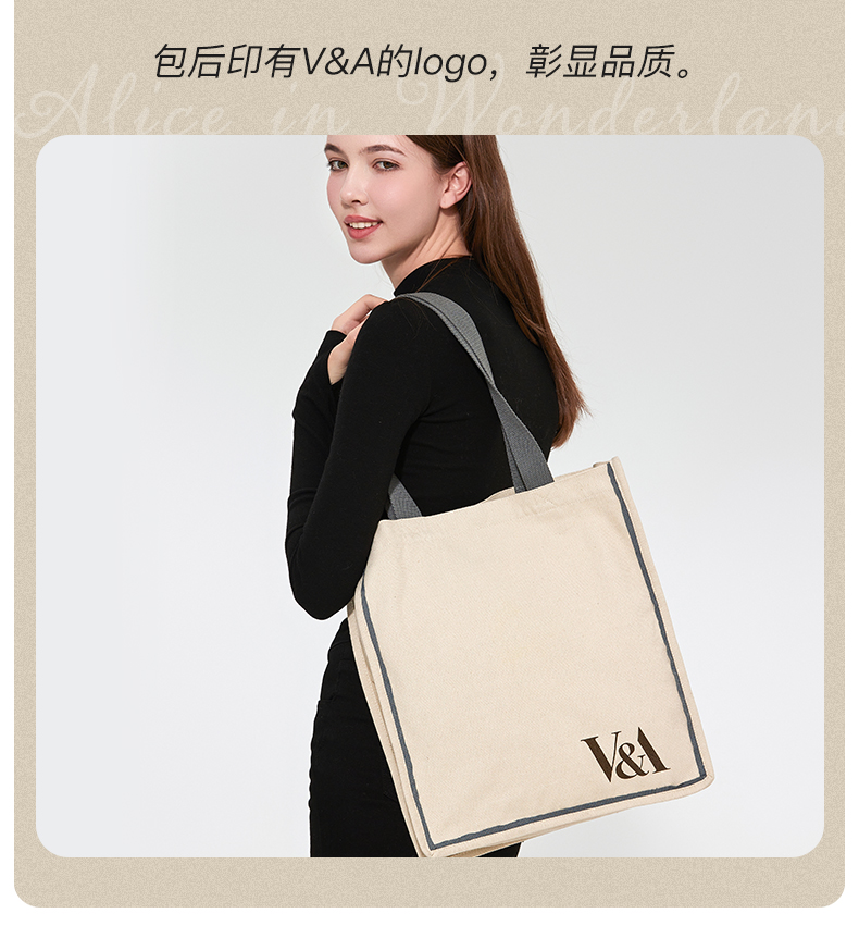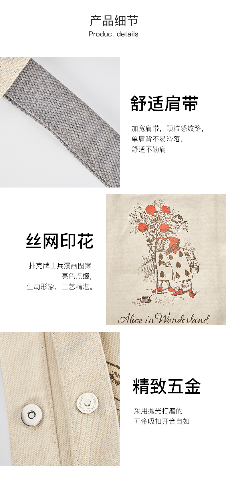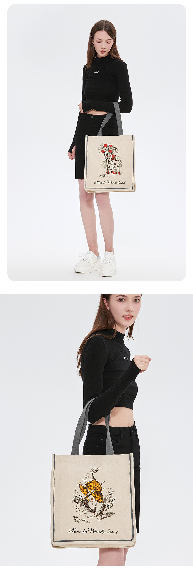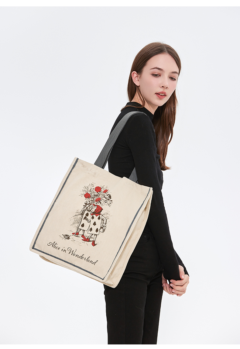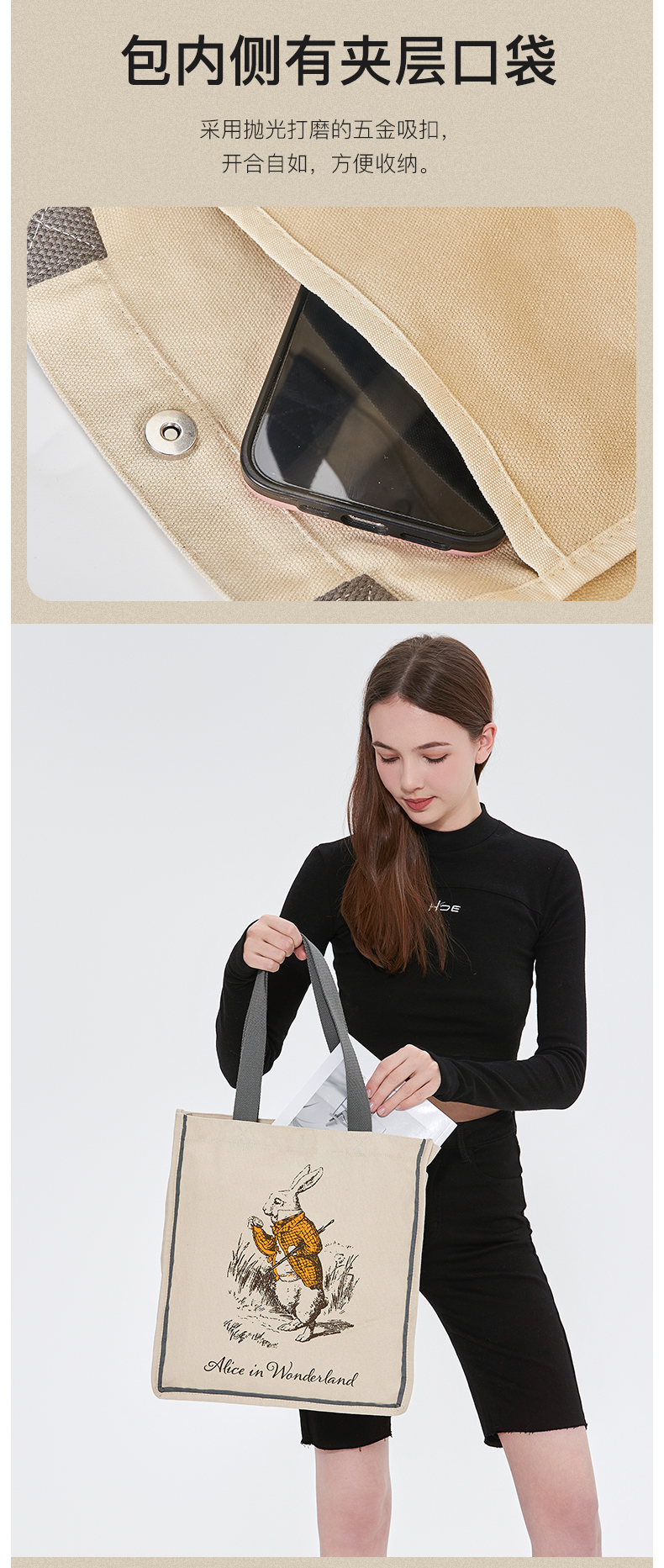 V&A博物馆 爱丽丝漫游奇境系列 卡牌怀表兔印花帆布单肩包
