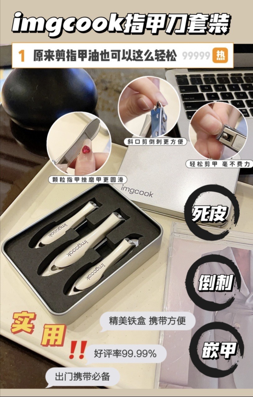 有了imgcook指甲套盒,轻松剪掉而且还有防飞溅设计,再也不会尴尬地到处飞,十分轻便,随身携带也很方便,磨甲刀和指甲剪融和为一体真是yyds!