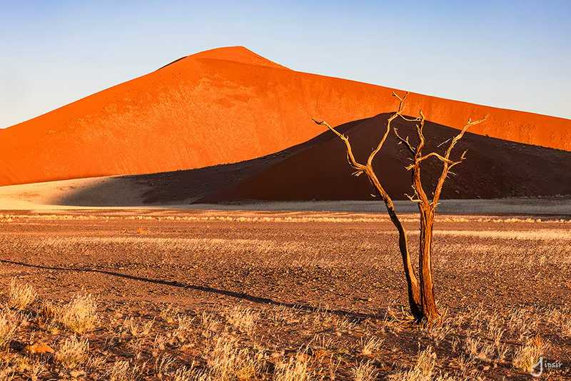 早餐后乘车前往世界上最古老的纳米布红沙漠,拍摄神秘壮美的苏丝斯黎沙丘。傍晚前往“45 号”沙丘拍摄日落。夜间可以拍摄被评为世界最美星空之一的纳米比亚沙漠星空。
