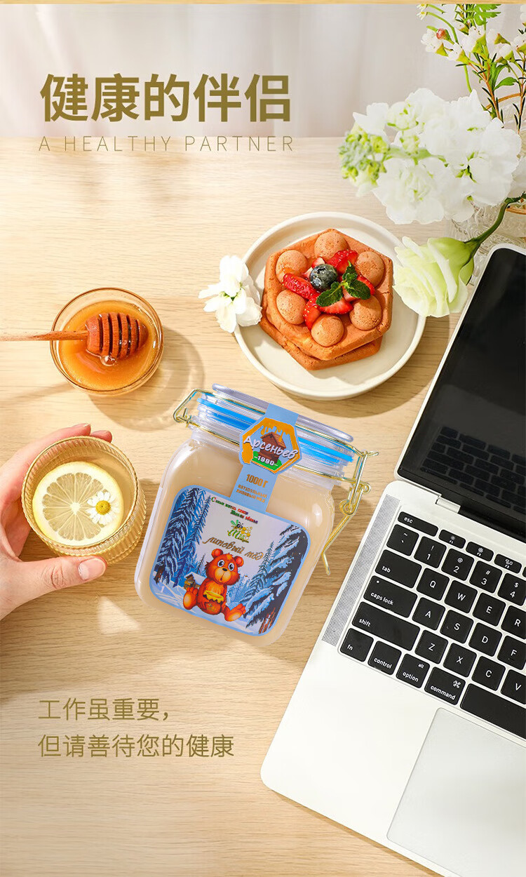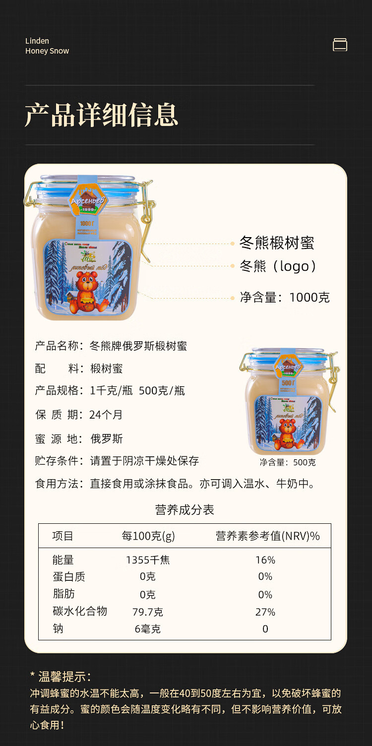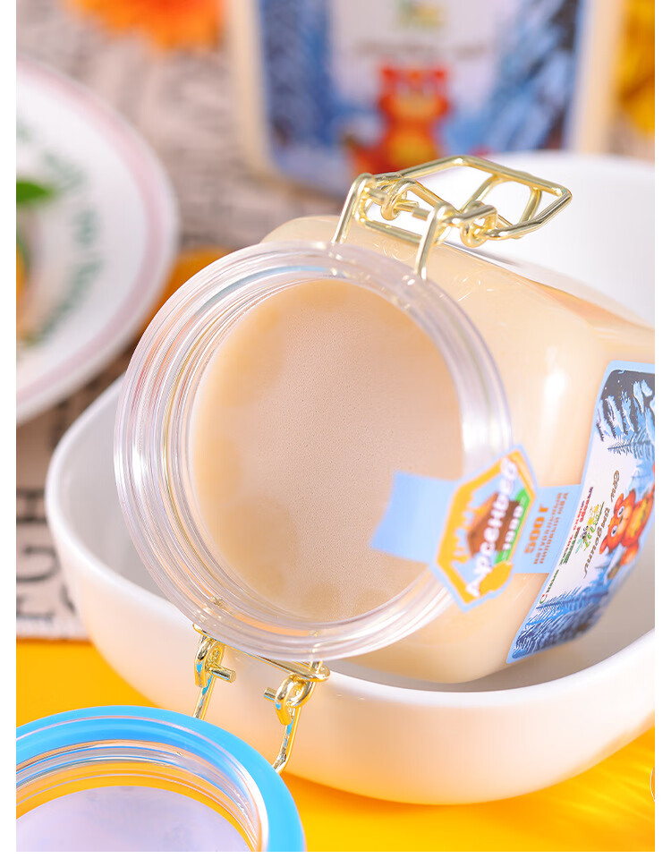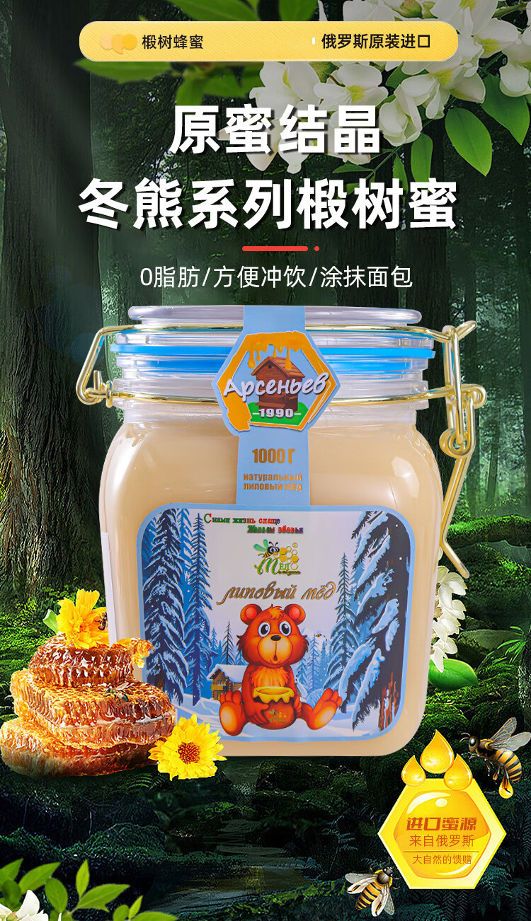 俄罗斯冬熊蓝盖卡扣椴树蜜1000g/033726 形如凝脂蜜液稠厚