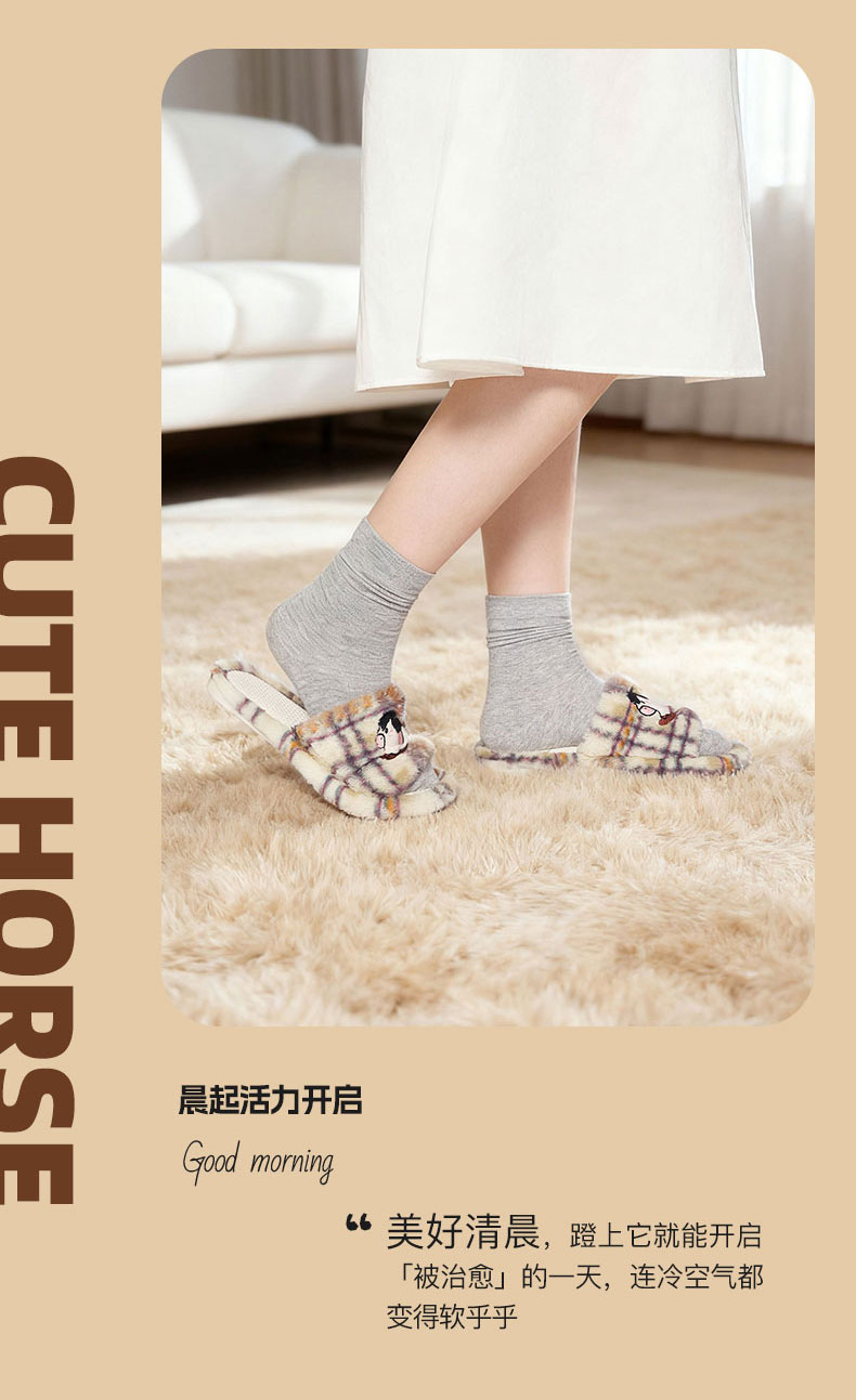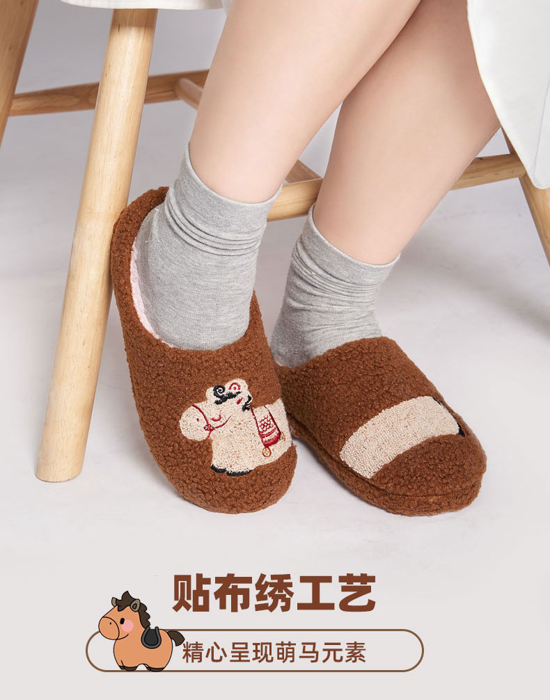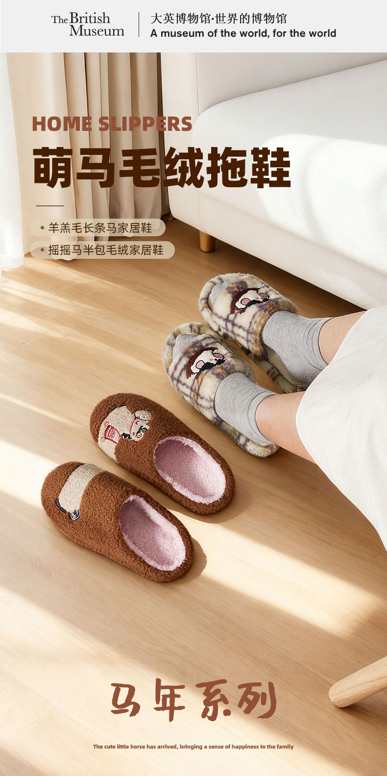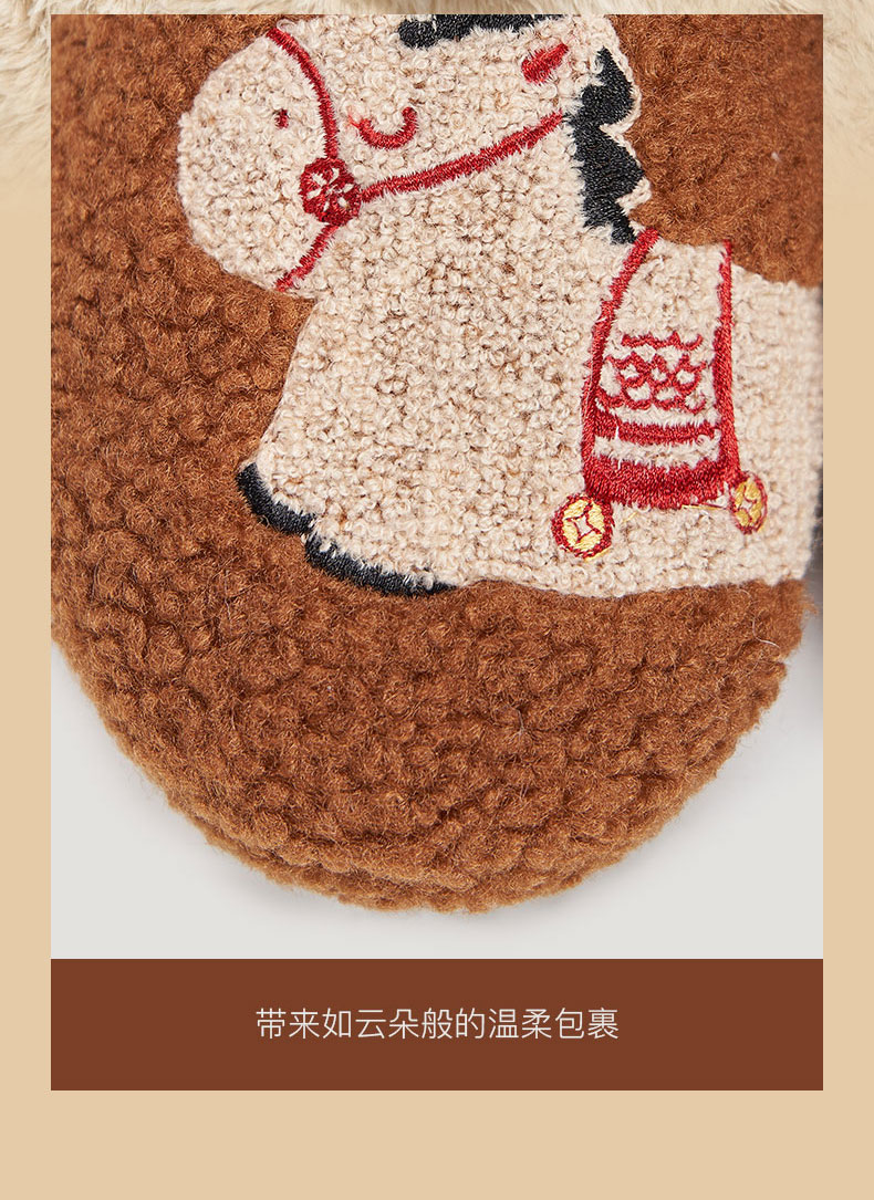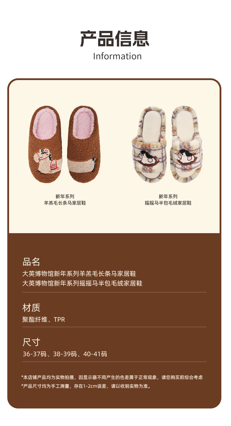 大英博物馆 新年系列羊羔毛长条马家居鞋 摇摇马半包毛绒家居鞋