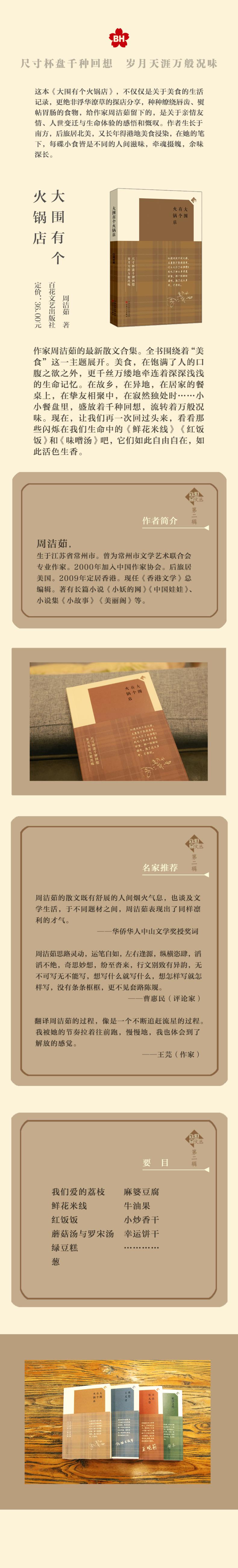 这本《大围有个火锅店》,不仅仅是关于美食的生活记录,更绝非浮华潦草的探店分享,种种缭绕唇齿、熨帖胃肠的食物,给作家周洁茹留下的,是关于亲情友情、人世变迁与生命体验的感悟和慨叹。作者生长于南方,后旅居北美,又长年得港地美食浸染,在她的笔下,每碟小食皆是不同的人间滋味,牵魂摄魄,余味深长。
