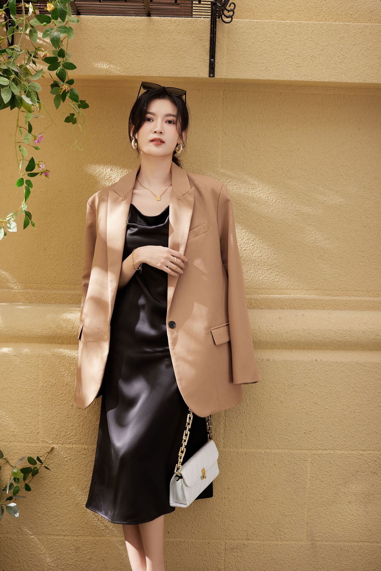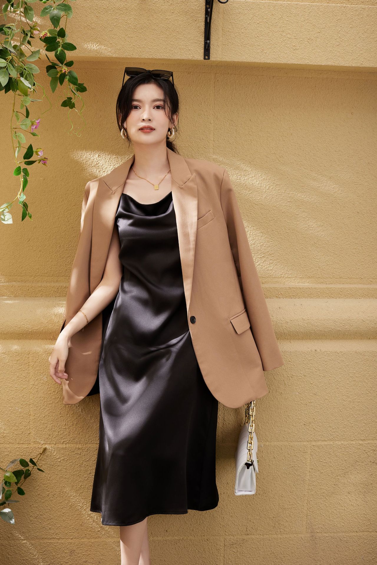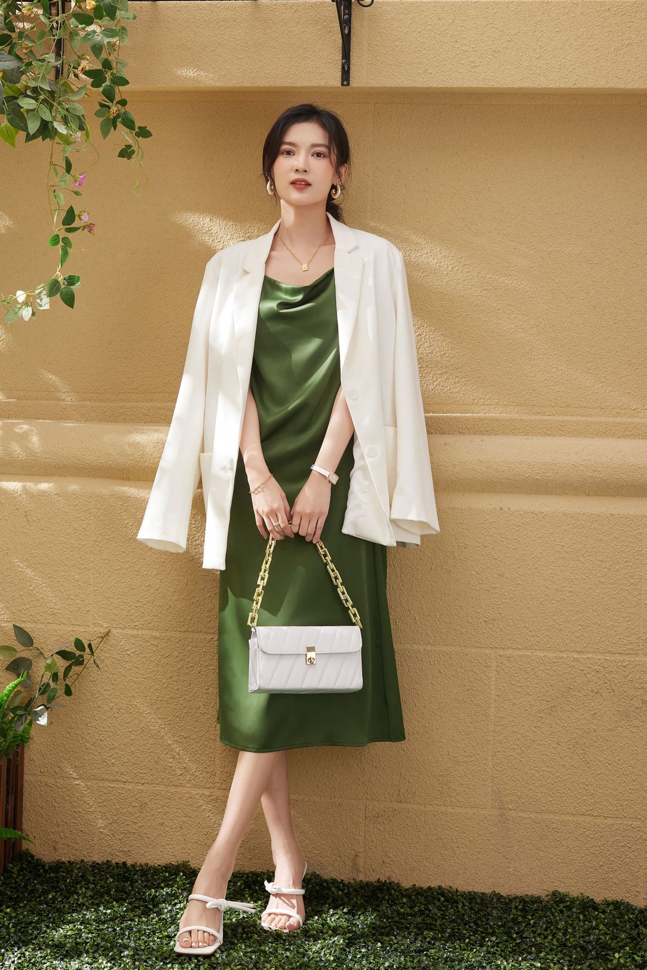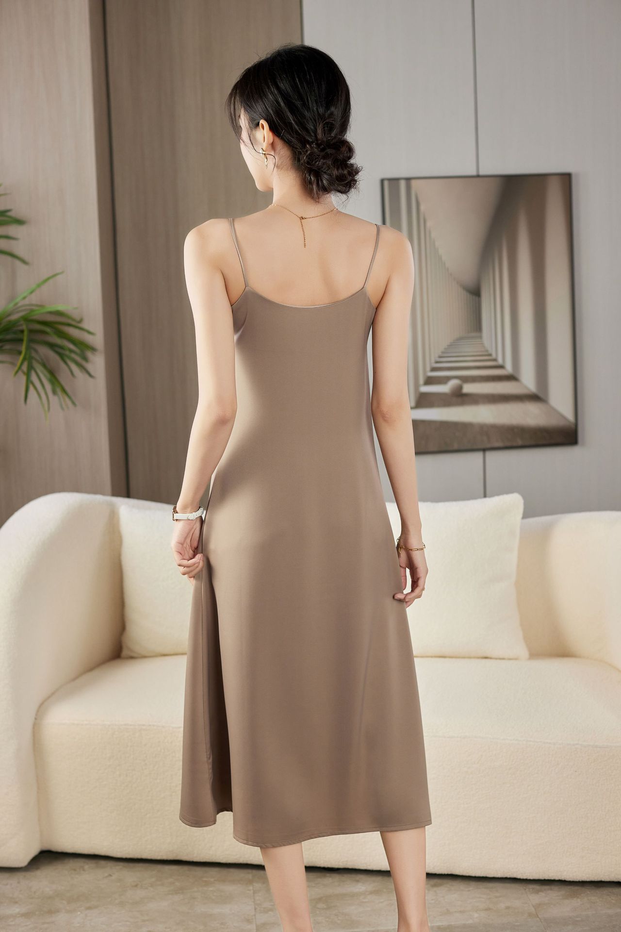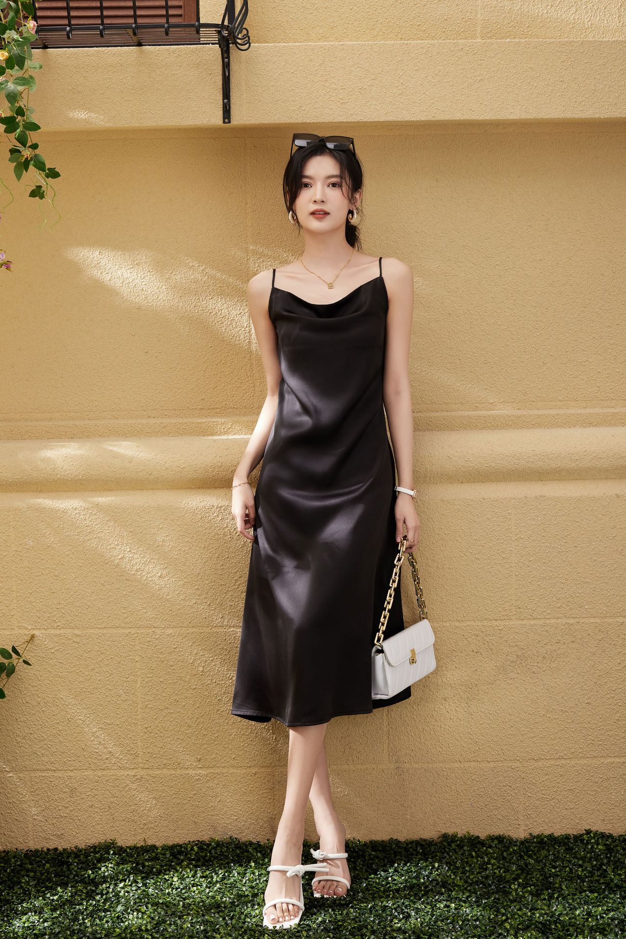 【高级荡领吊带裙】氛围感连衣裙仿醋酸缎面香槟色法式女夏法式礼服裙内搭
