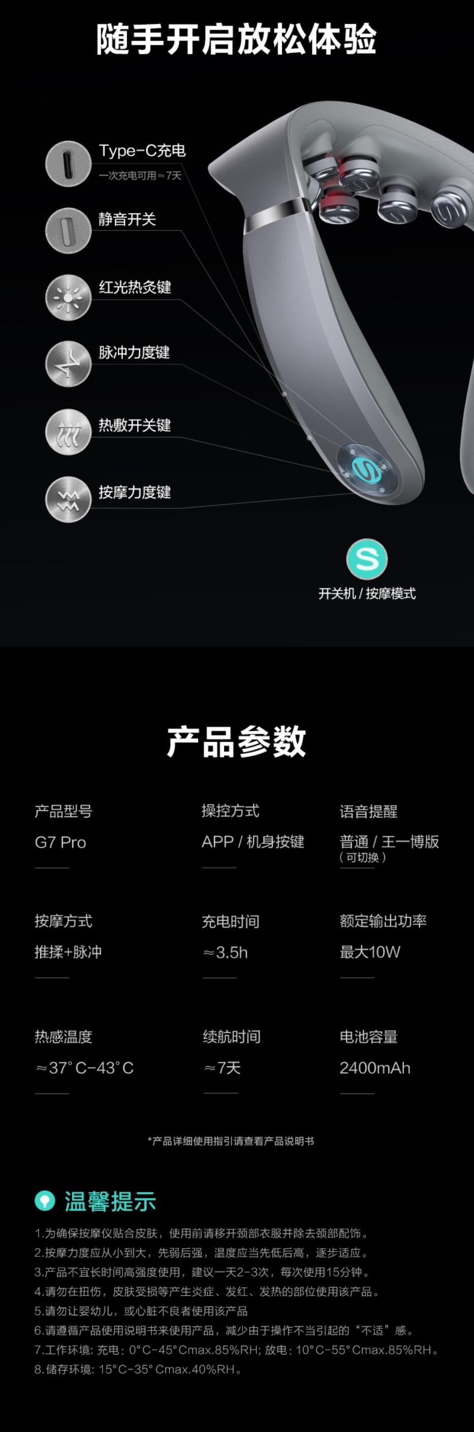 SKG 热灸推揉颈椎按摩仪 G7pro