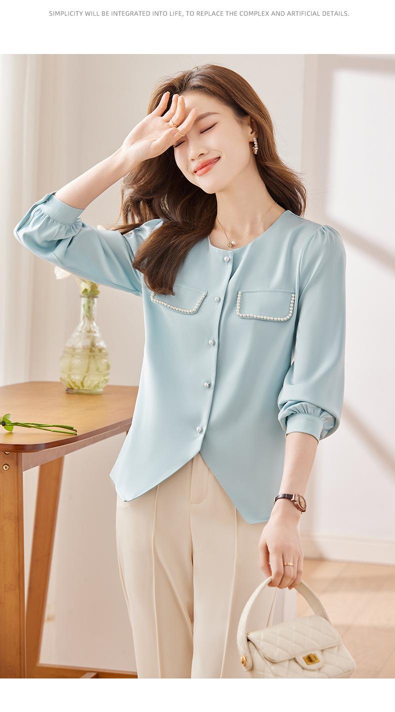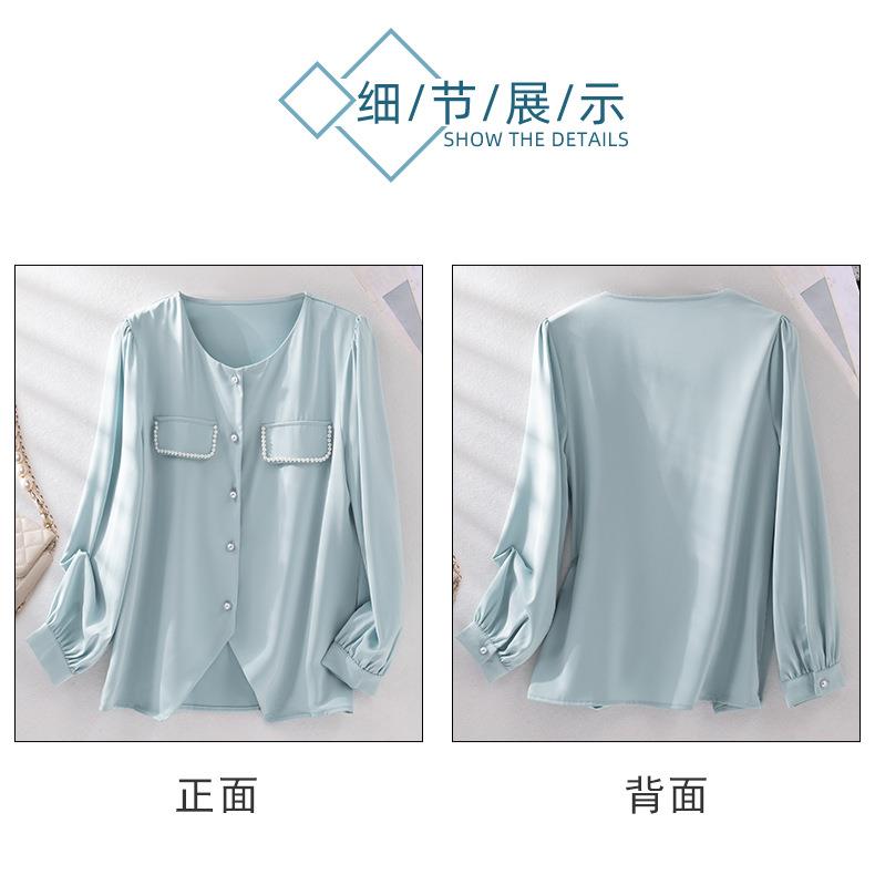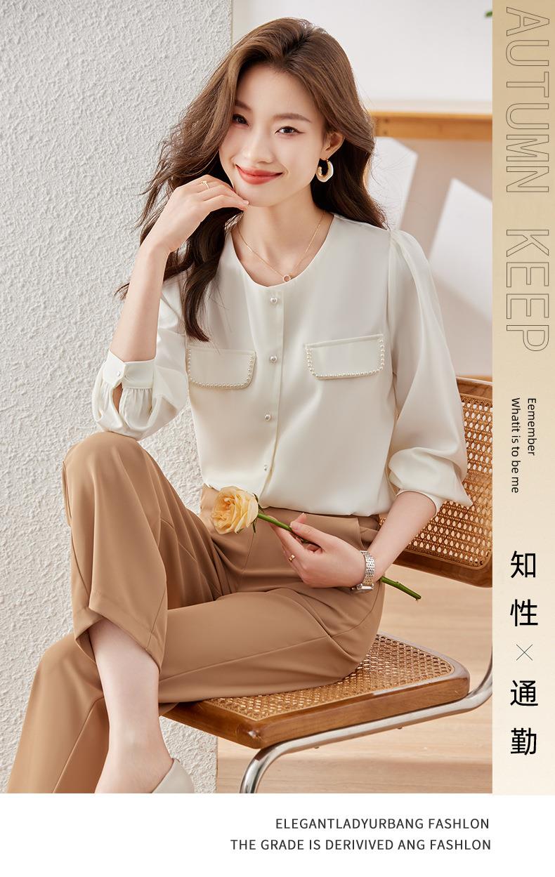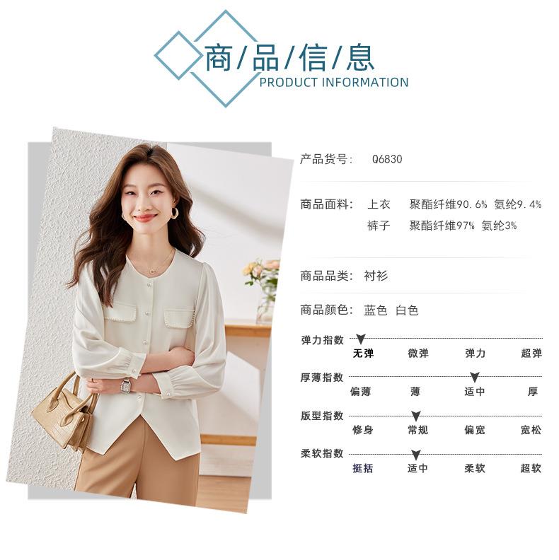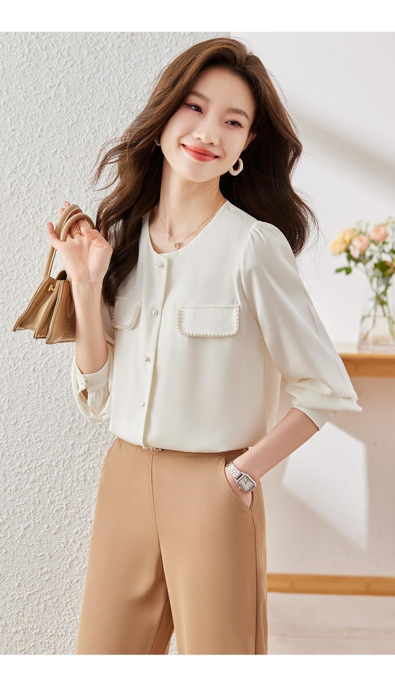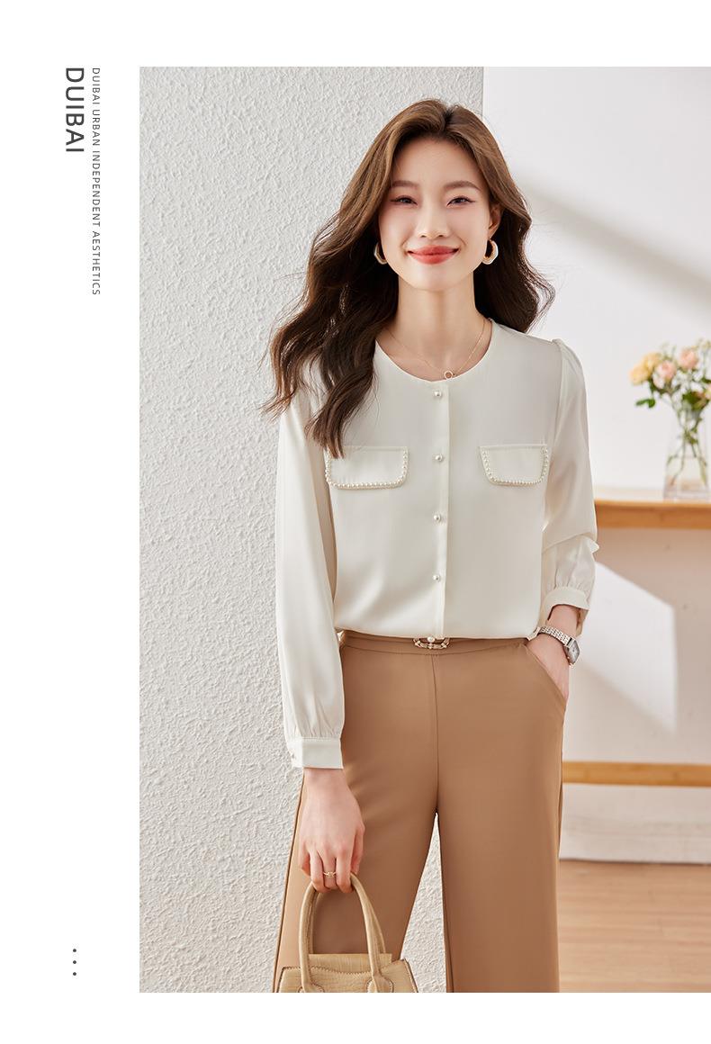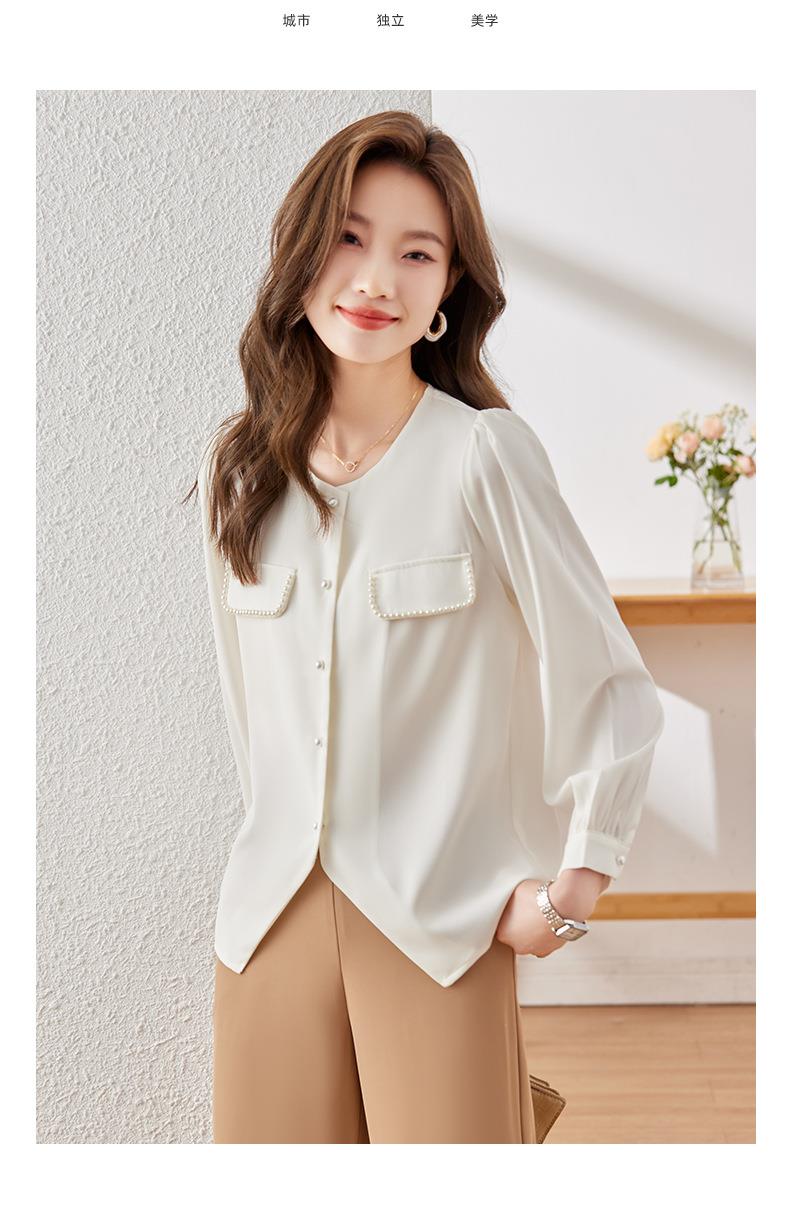 娜璐多 法式小香风设计感修身衬衫女2023秋季新款洋气珍珠小衫不规则上衣