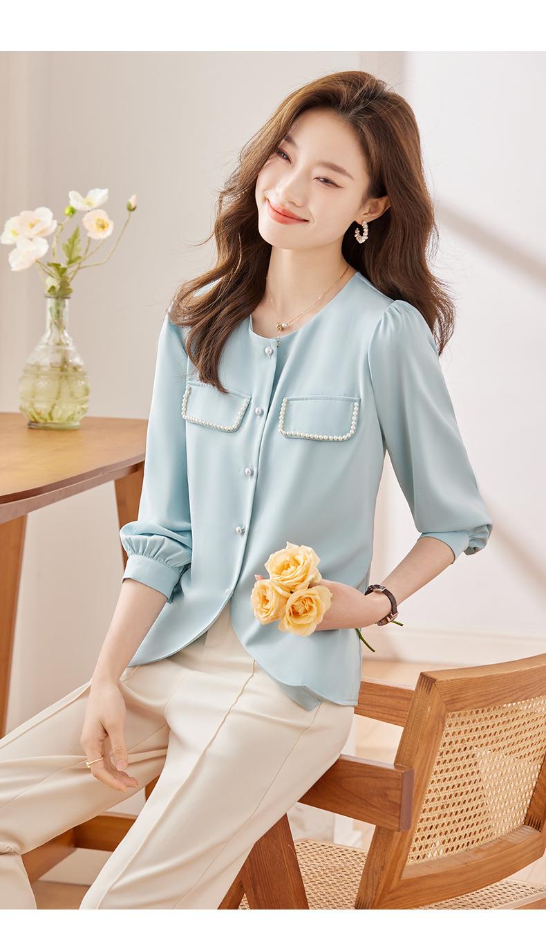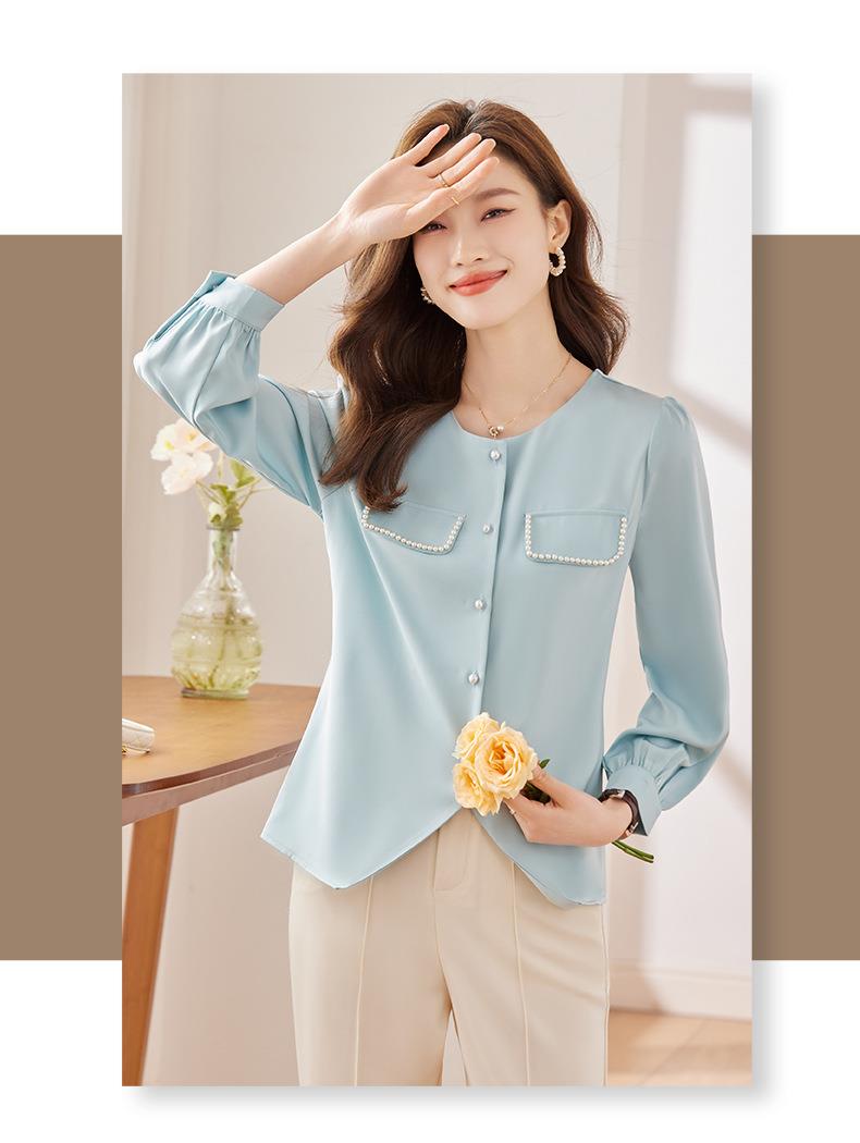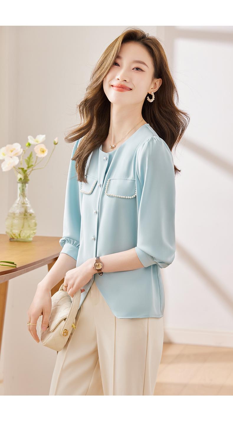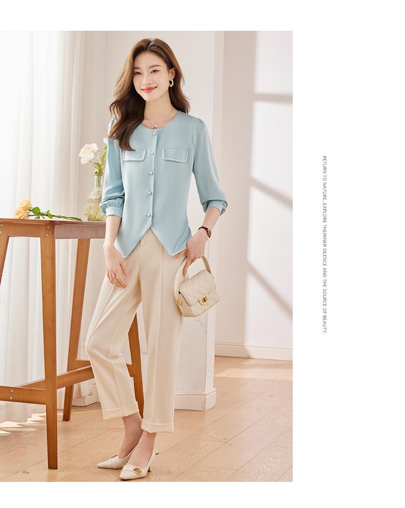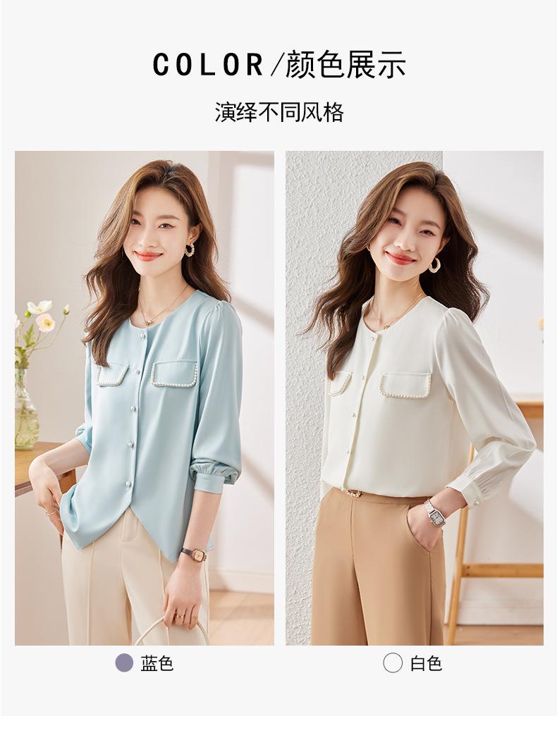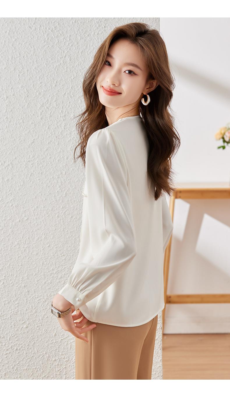 娜璐多 法式小香风设计感修身衬衫女2023秋季新款洋气珍珠小衫不规则上衣