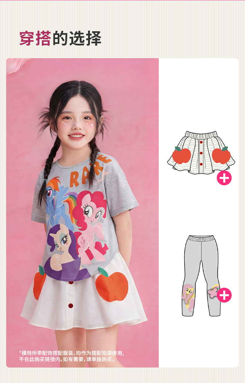 小马宝莉联名年衣童装T恤儿童夏季新款女孩公主可爱卡通短袖上衣