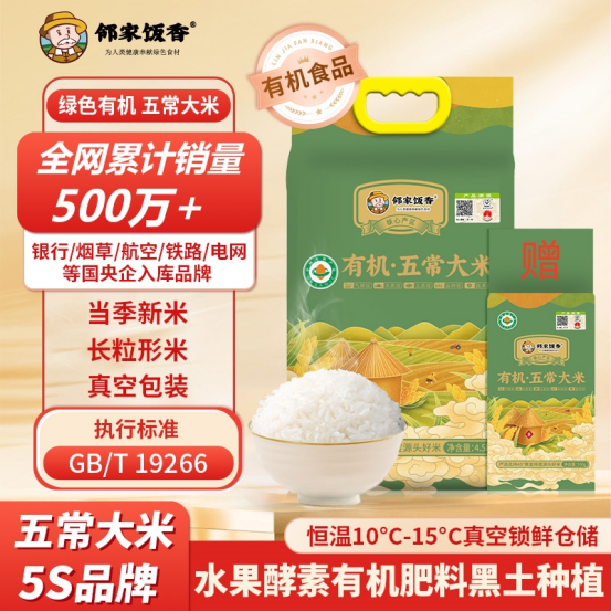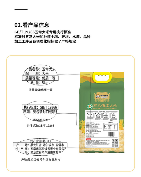 市面上有很多假冒劣质五常大米 购买时一定要擦亮眼睛 买正品一定要认准有国家三标认证的‼ 鹰标、地理保护标识、产地证明商标 还要看产品执行标准 GB/T19266‼ 是独属于五常大米的执行标准 开团这款【邻家饭香有机五常大米】 每袋都有溯源防伪标识 国家地理标志产品鹰标防伪标识 年年爆卖百万单,💯正宗!