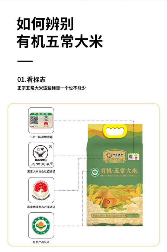 ———— 如何辨别有机五常大米 ———————— ①看标志,这些标准一个不能少✔