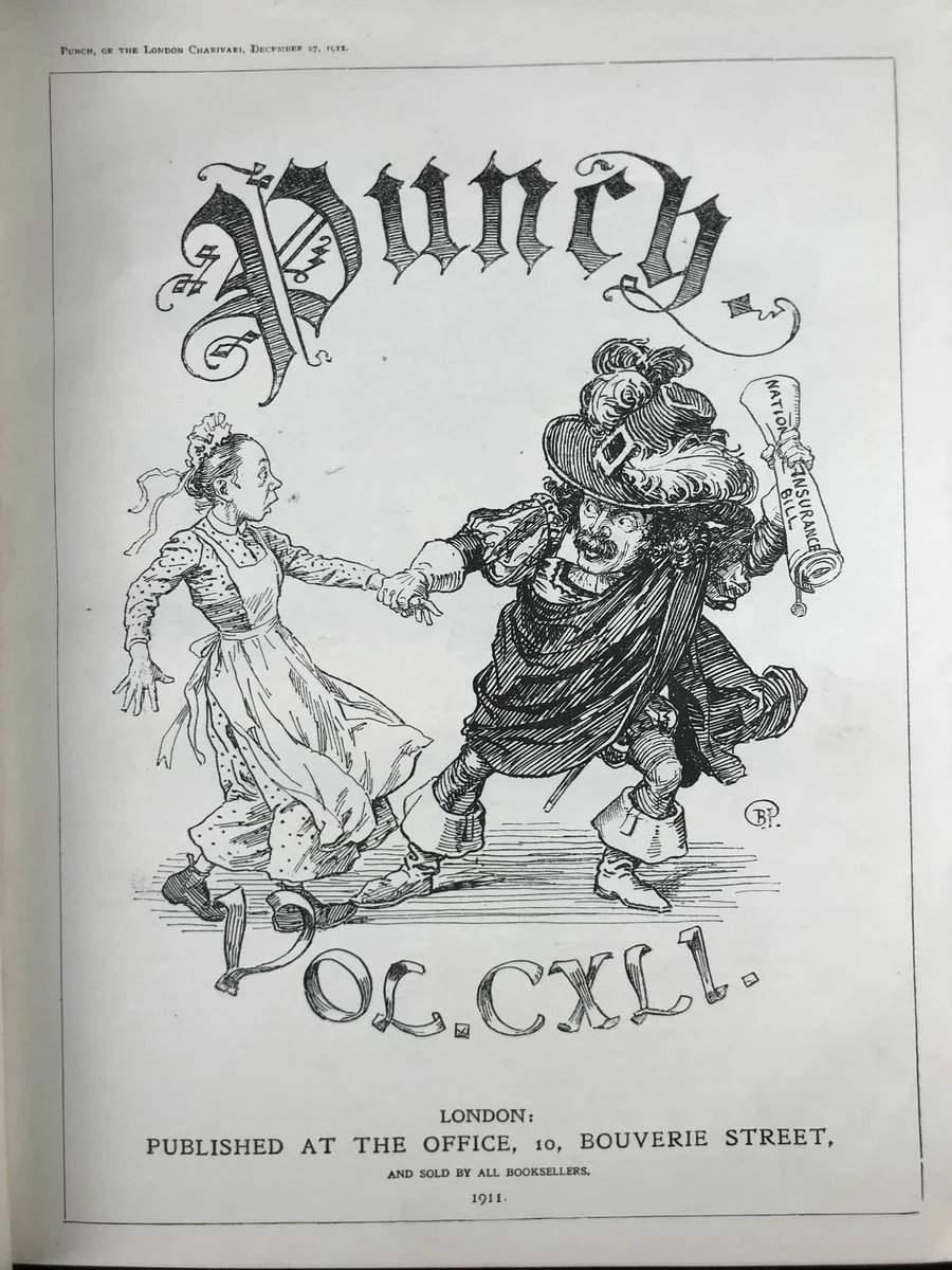 1911年7-12月 英国讽刺漫画杂志《笨拙》 数百幅插图 漆布精装16开