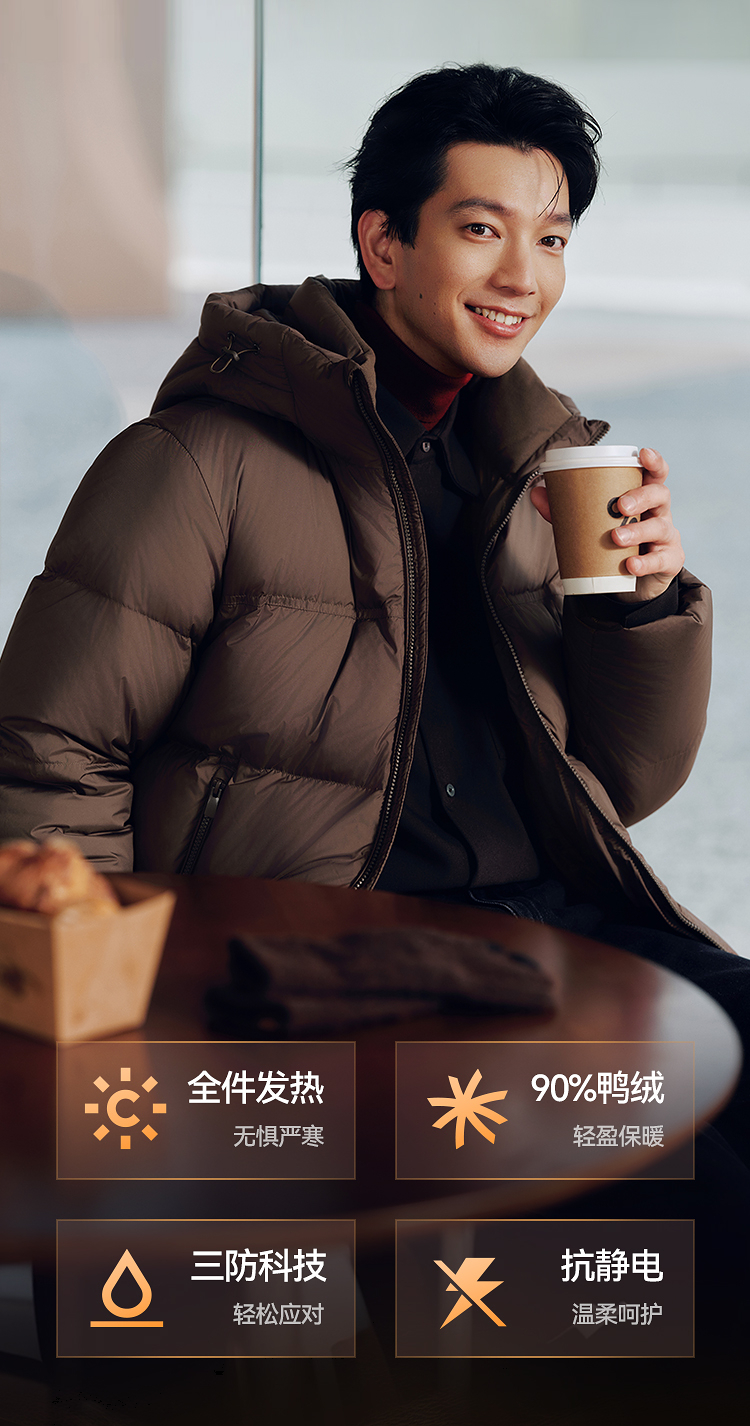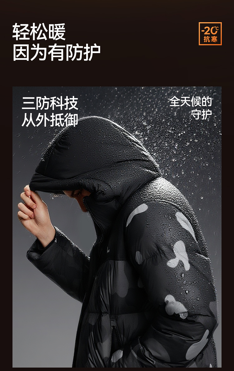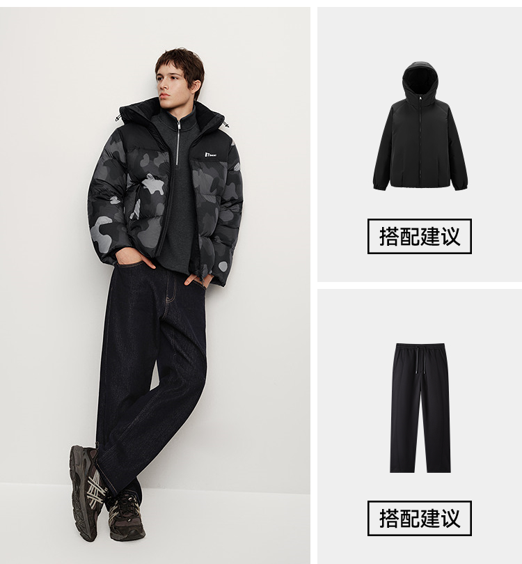 【爆品主推】轻松羽绒|森马羽绒服男三防外套情侣冬装2025新款连帽上衣抗静电