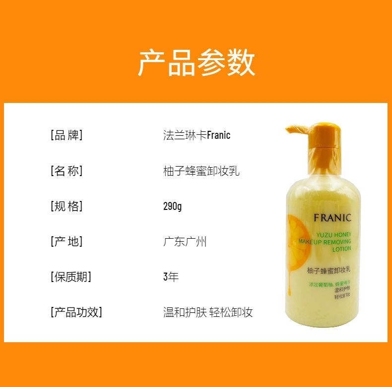 【爆款超低价预售 急单慎拍】法兰琳卡柚子蜂蜜卸妆乳温和护肤轻松卸妆水润细腻干净卸妆唇眼脸