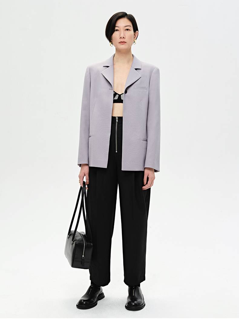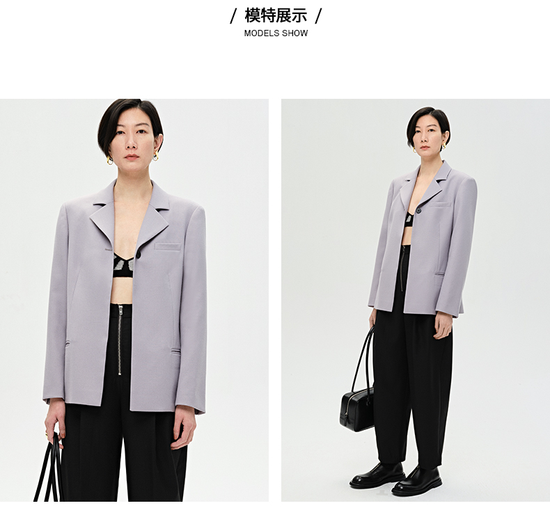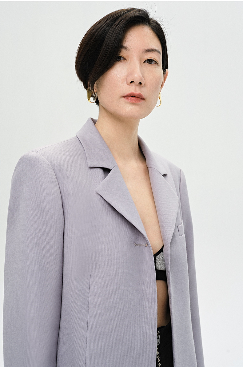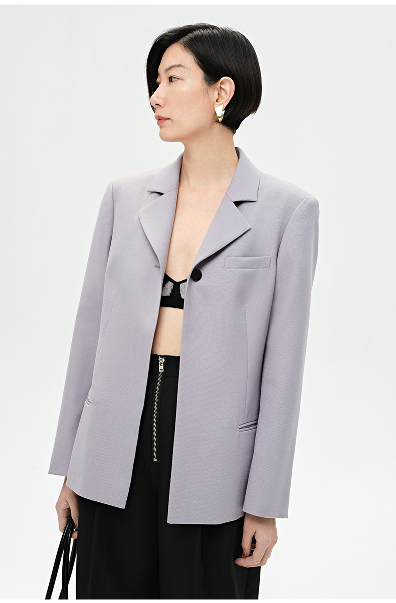 HIDEMI 雾紫色精纺肌理感羊毛一粒扣西装
