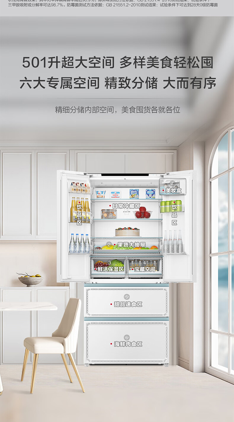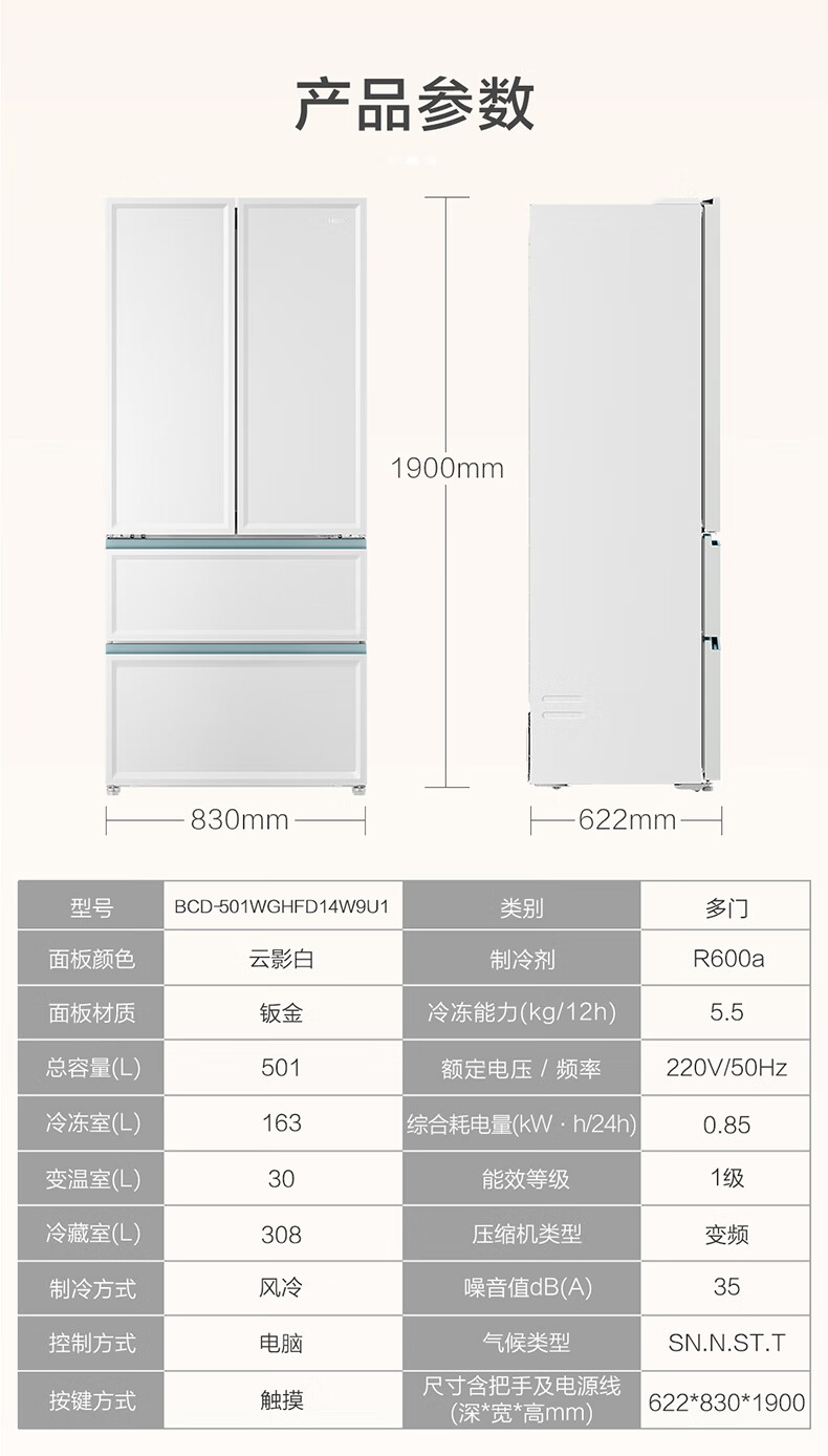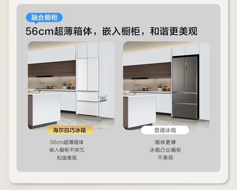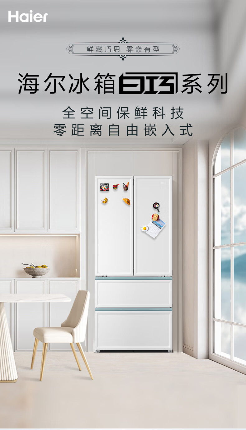 【白巧系列】海尔501L白巧零嵌全空间保鲜超薄冰箱多门四开门法式EPP超净底部散热家用大容量电冰箱
