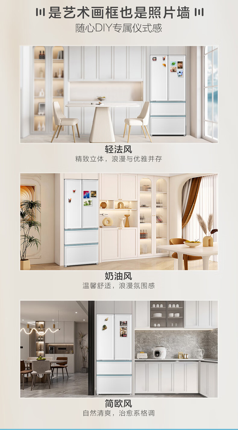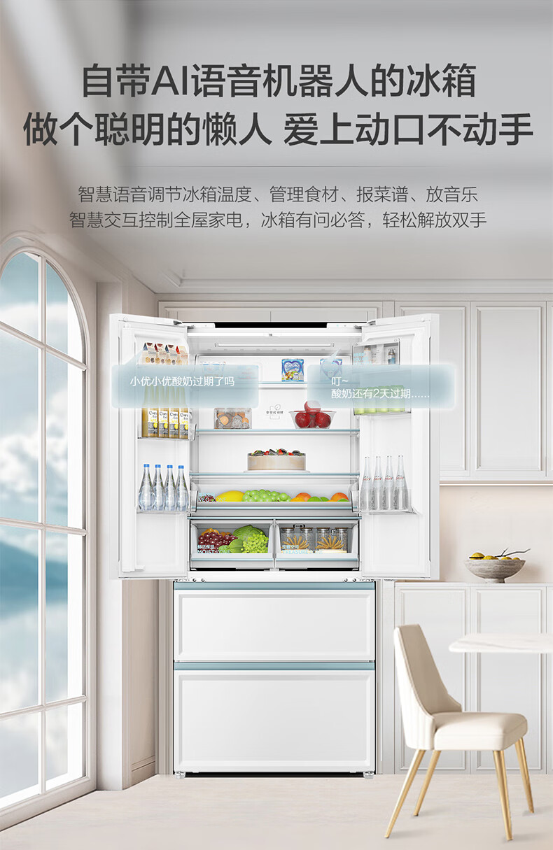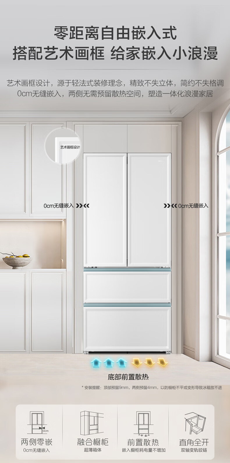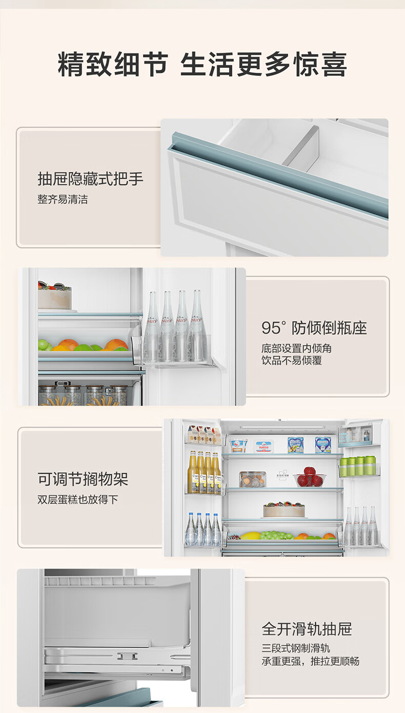 【白巧系列】海尔501L白巧零嵌全空间保鲜超薄冰箱多门四开门法式EPP超净底部散热家用大容量电冰箱