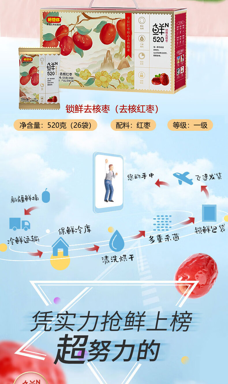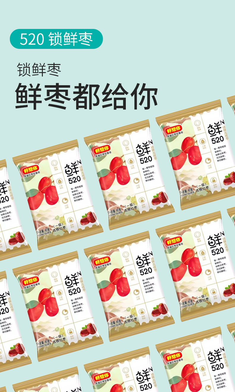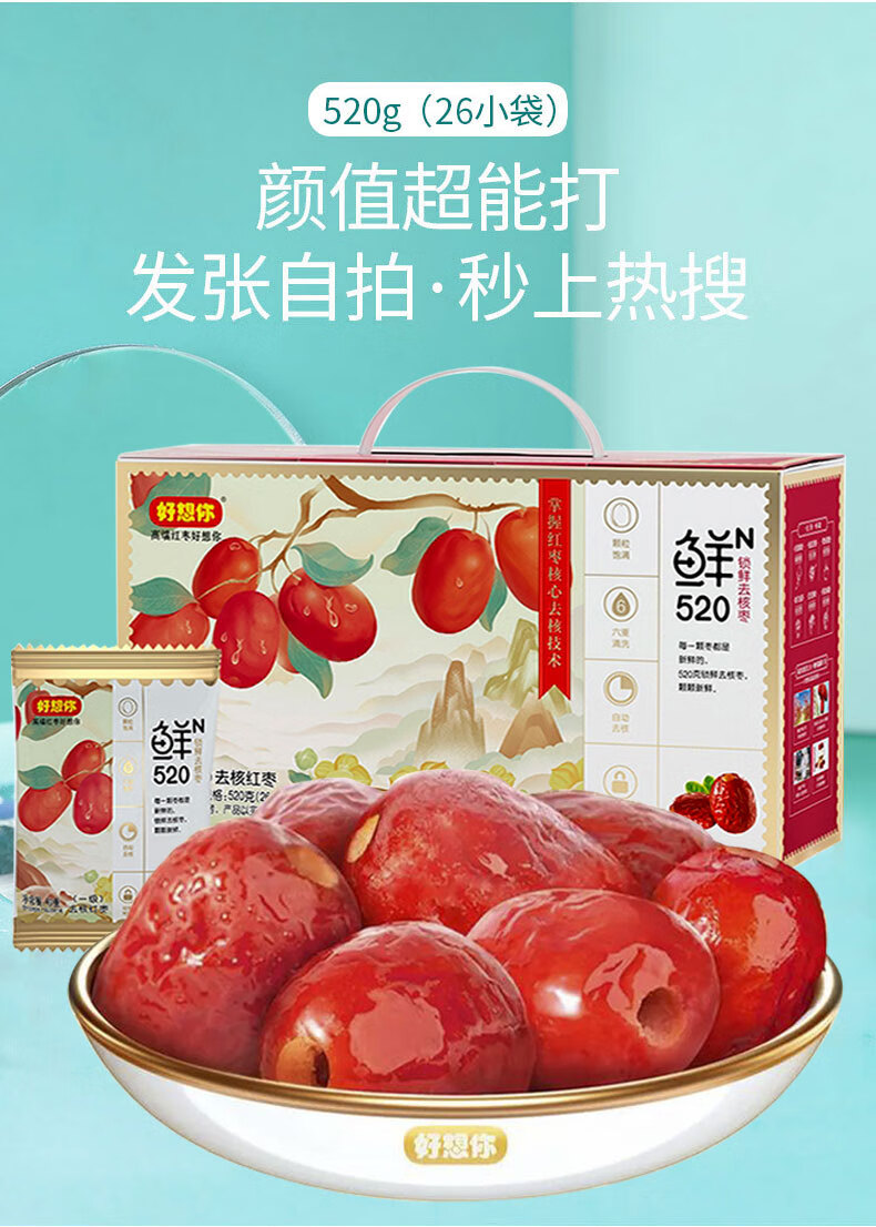 好想你红枣礼盒锁鲜去核红枣520克一级红枣灰枣开袋即食休闲零食煲粥