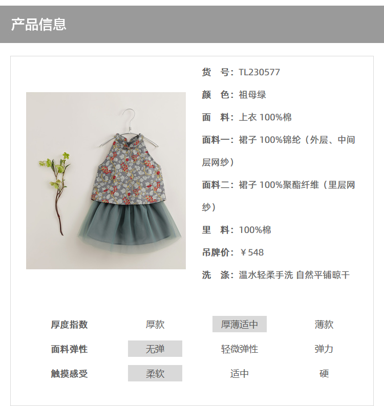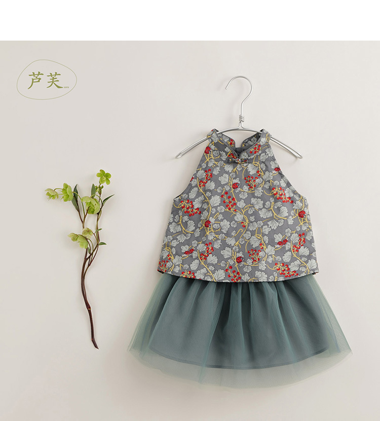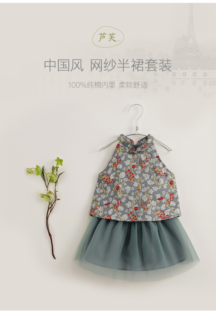 【马克珍妮 芦芙】新款夏装 女童中国风网纱半裙套装230577