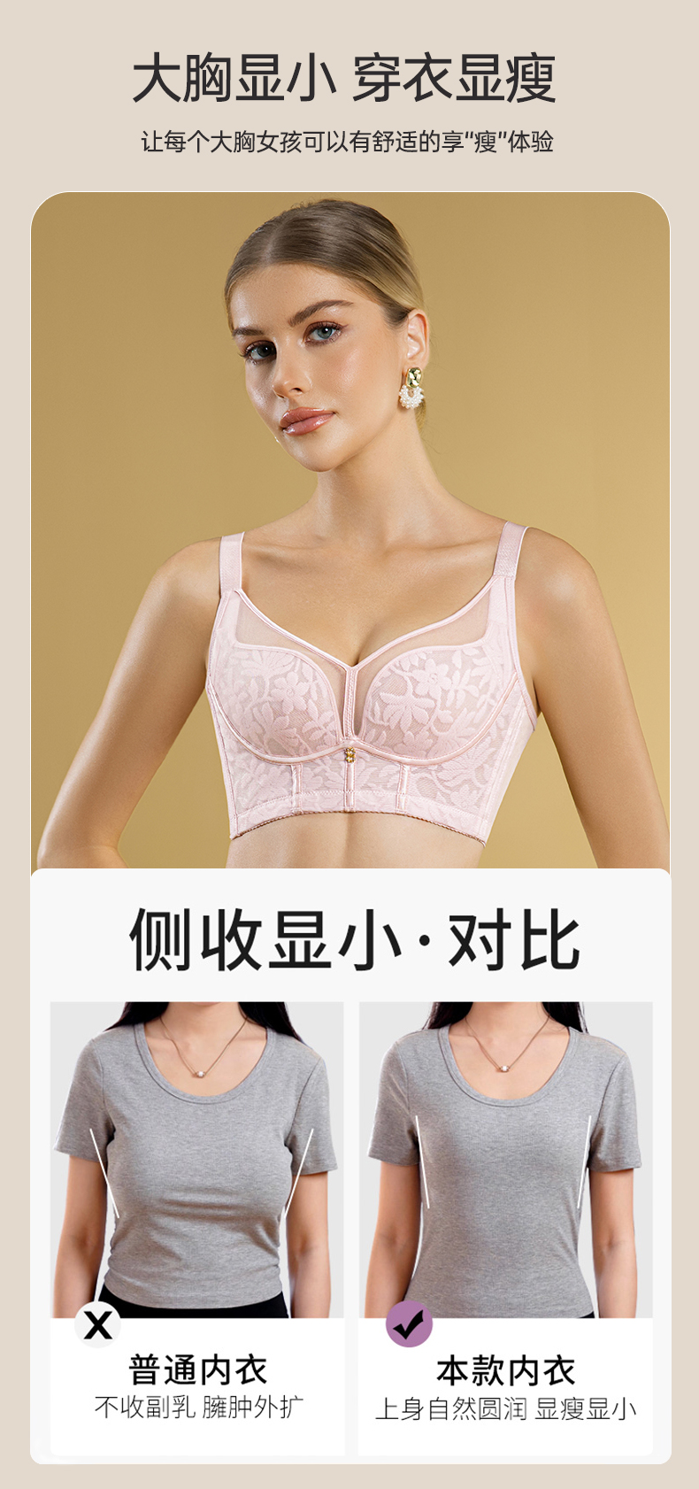 前扣亲肤大胸显小文胸