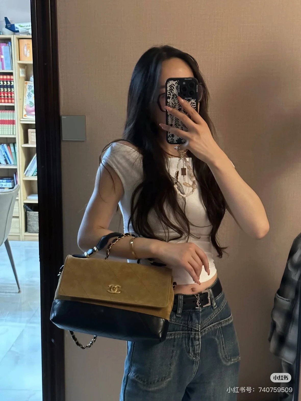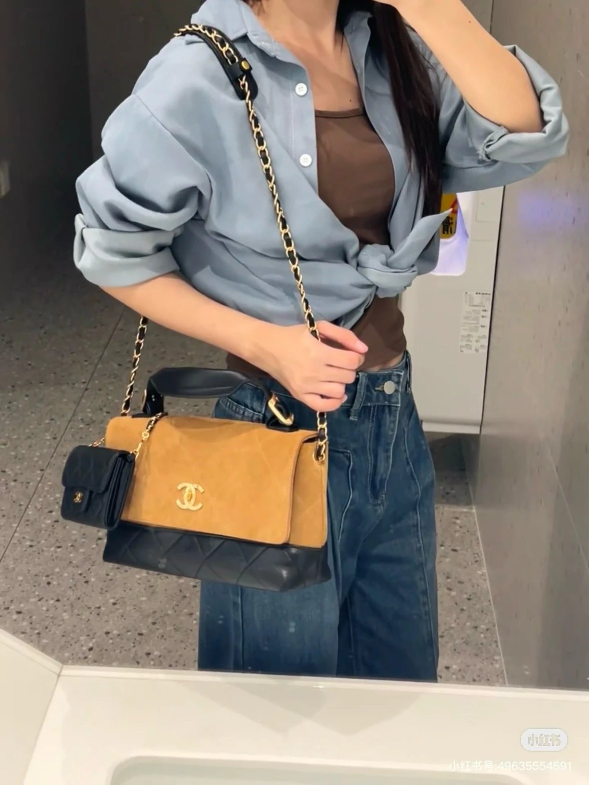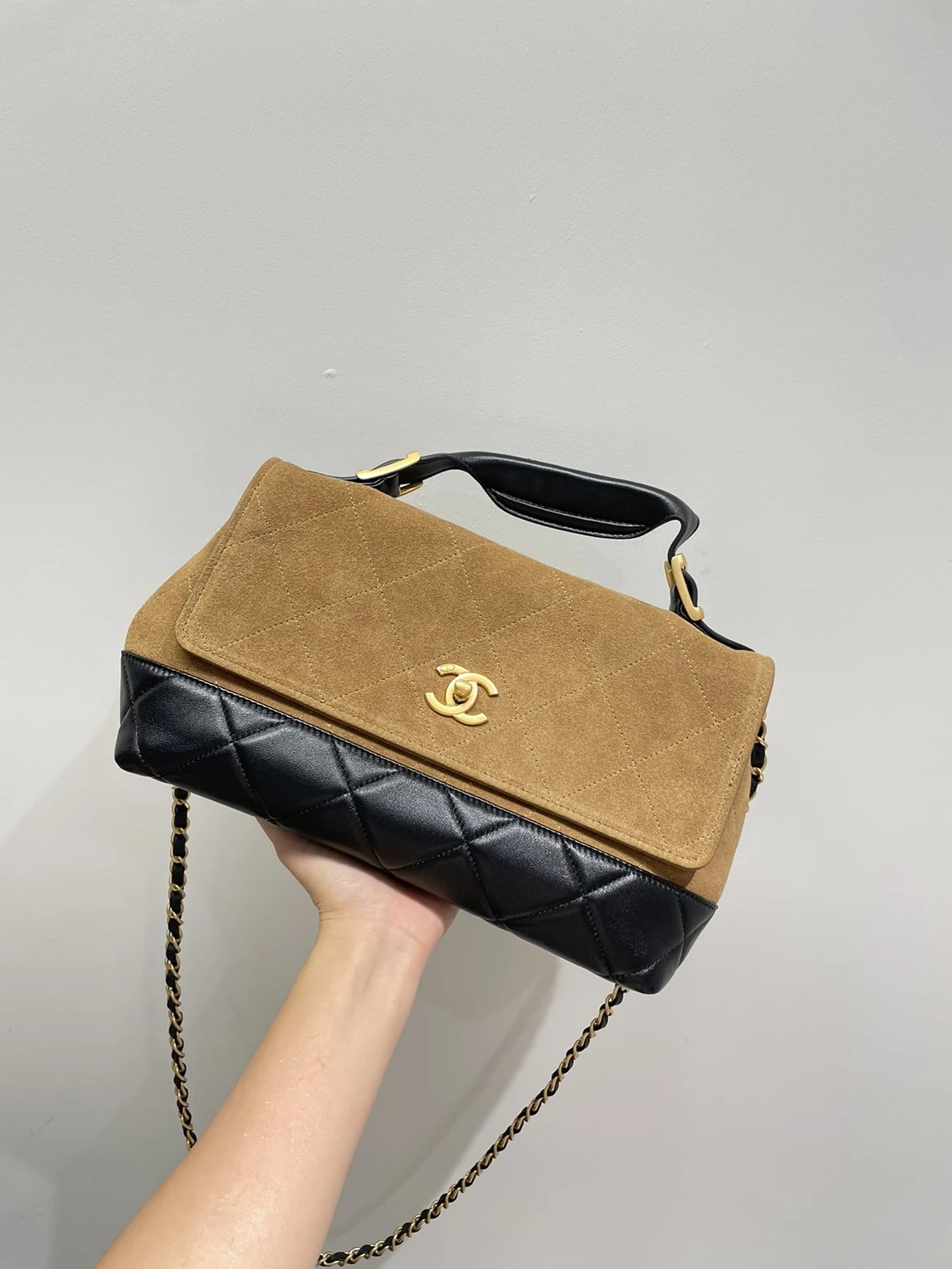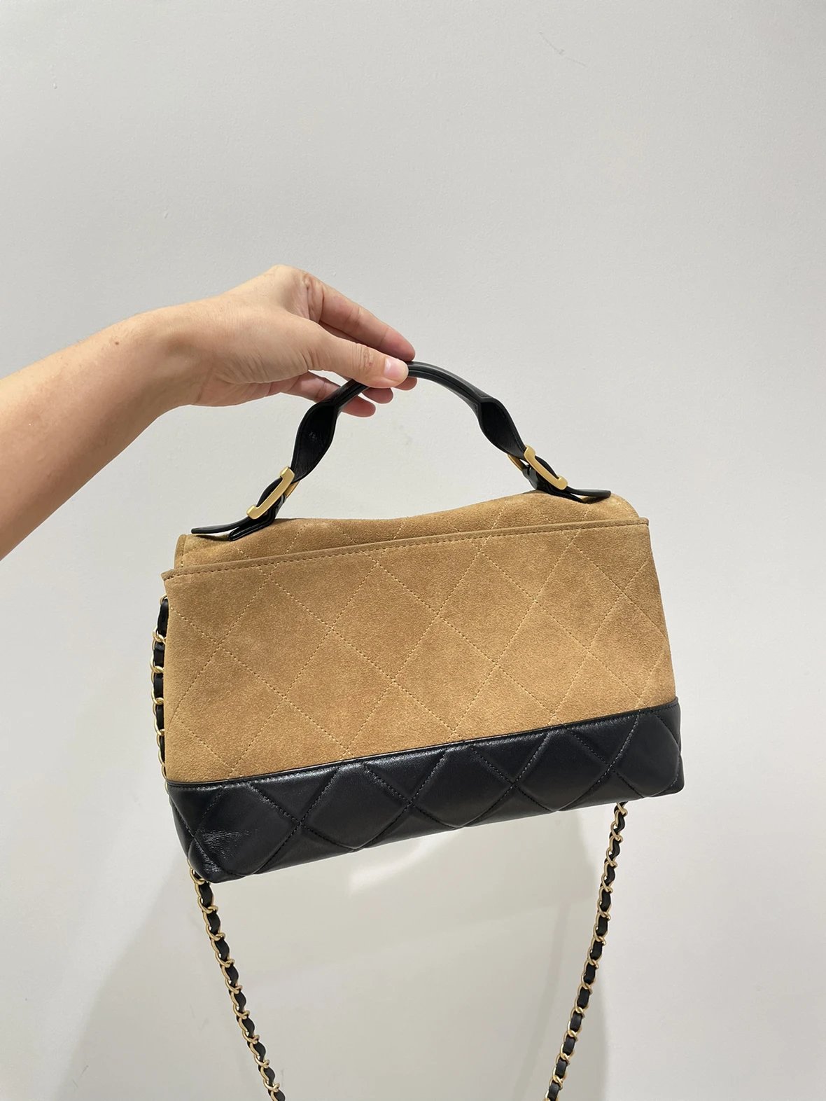重磅推荐!25A麂皮拼色手提邮差包 大号 高级手工坊 意大利Bonaudo反绒小牛皮拼接羊皮
