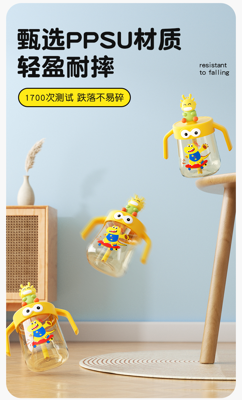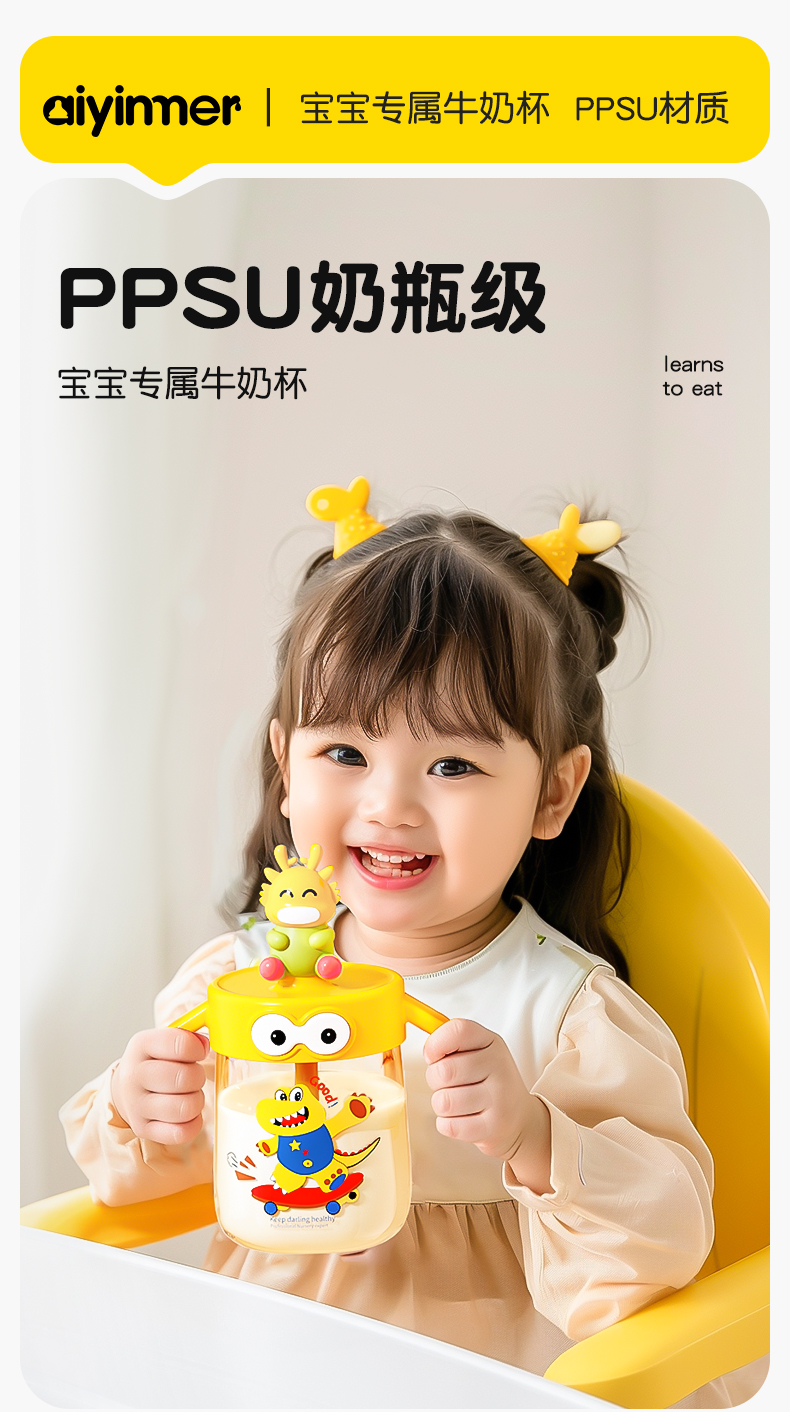 爱因美aynmer可爱直饮牛奶杯奶瓶儿童水杯ppsu防摔吸管杯宝宝喝奶