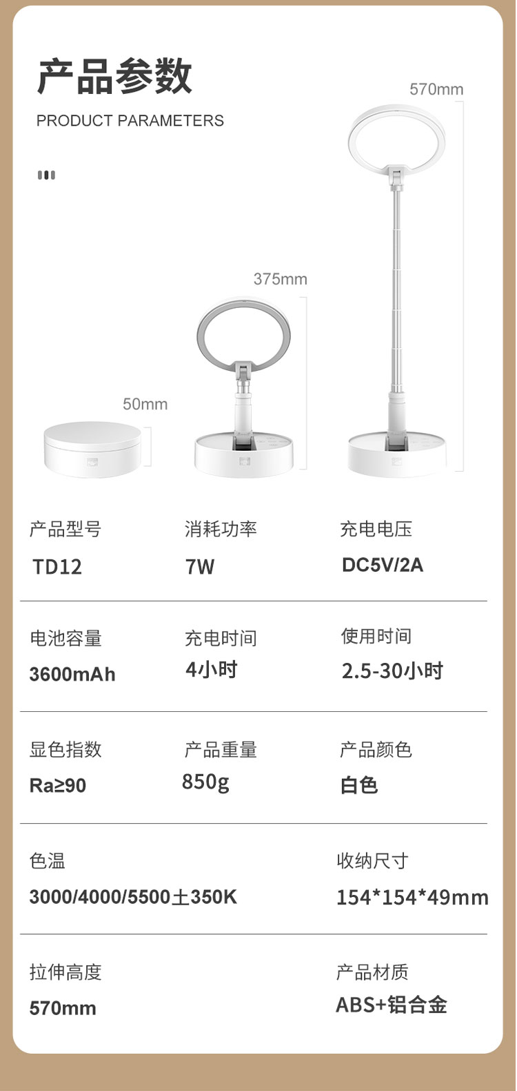 沃品 折叠收纳护眼台灯 TD12