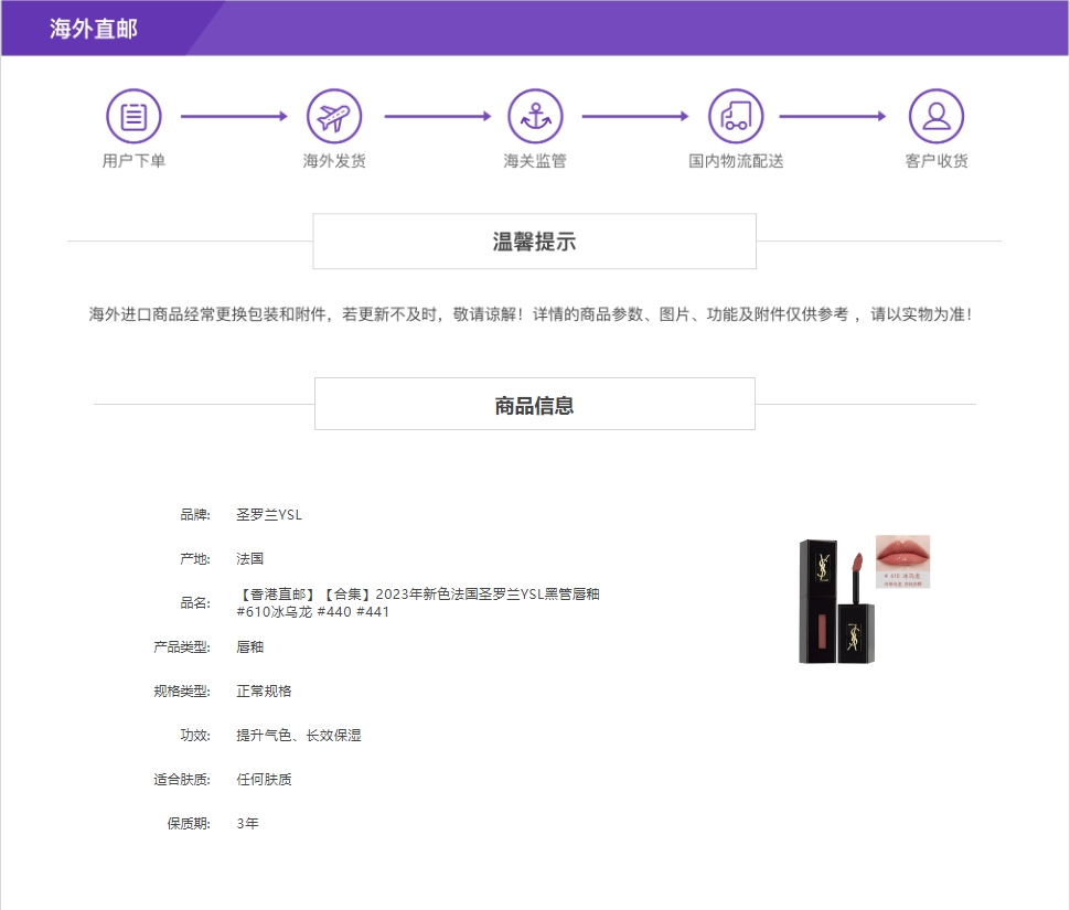 【香港直邮】【合集】2023年新色法国圣罗兰YSL黑管唇釉#610冰乌龙 #440 #441